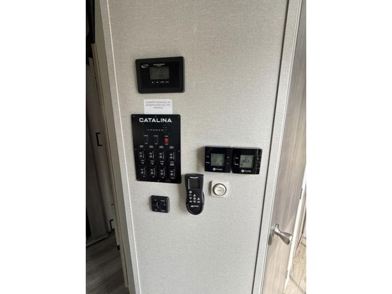 With any Catalina Destination trailer by Coachmen, you will enjoy comfortable extended stays wherever you decide to set up camp! The full length frame outriggers add strength to each unit, along with a seamless Alpha Roof membrane and Norco electromagnetic, powder coated chassis. You will love the open views provided by the residential-style sliding glass patio door, plus there are GE appliances, woodplank linoleum flooring, and hard valance window treatments to make your space feel more like home. Head outside to find a convenient "Leash Link" quick hookup D-ring for your furry friends, premium JBL exterior speakers, flush mount baggage doors for your gear, and the list of amenities goes on!