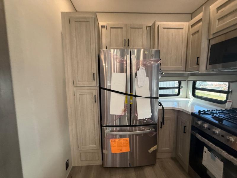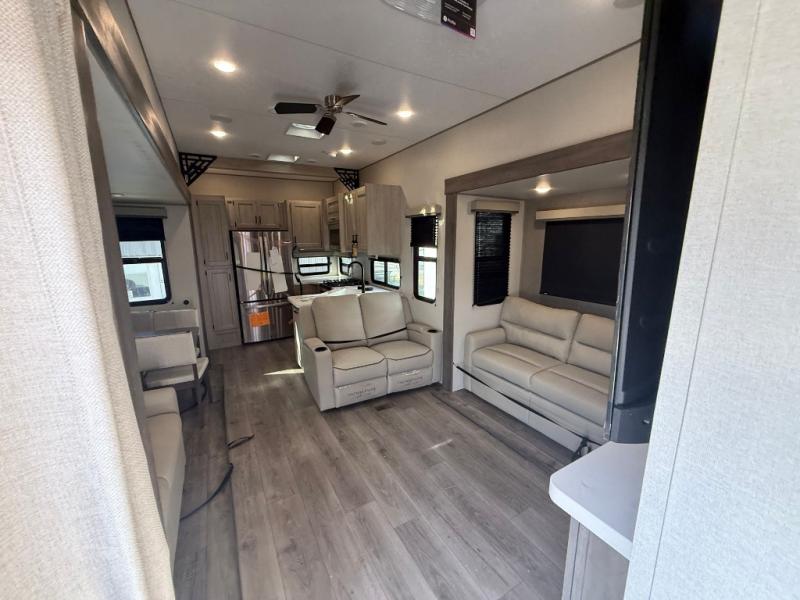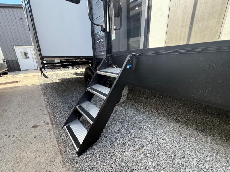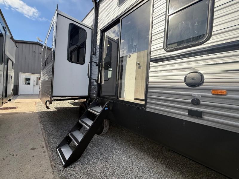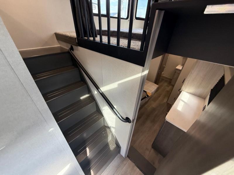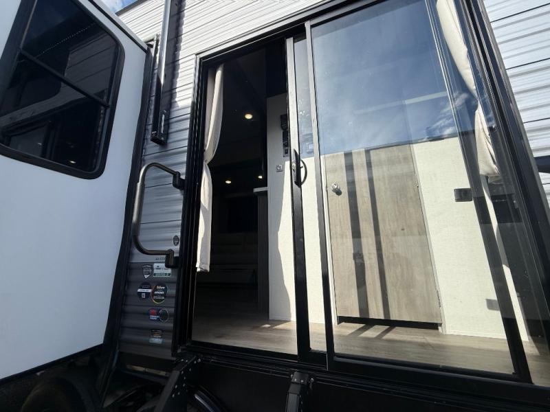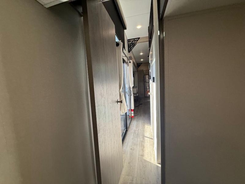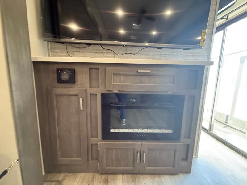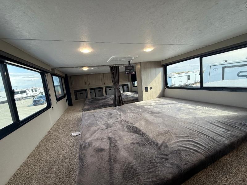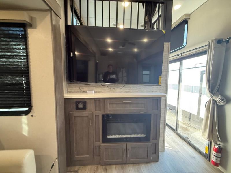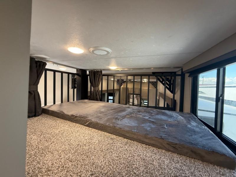 If you want to get out of the house without missing the comfort, you will love this destination trailer! Feel at home the moment you step in through the patio door and head to the open living area with double slide-outs making room for tons of seating areas to enjoy quality time by the fireplace with your guests. You will fall in love with the residential style kitchen featuring a 4 burner range, french door refrigerator, pantry, and much more to make your favorite recipes on the go. There is no such thing as too many guests when you have a loft that has two queen beds and a 28 x 64 bunk matt to rest. In the main floor you will have a master bedroom all to yourself that has its own private bath offering comfort and convenience at only a few steps away from your king bed.