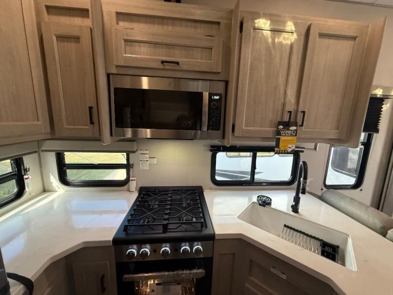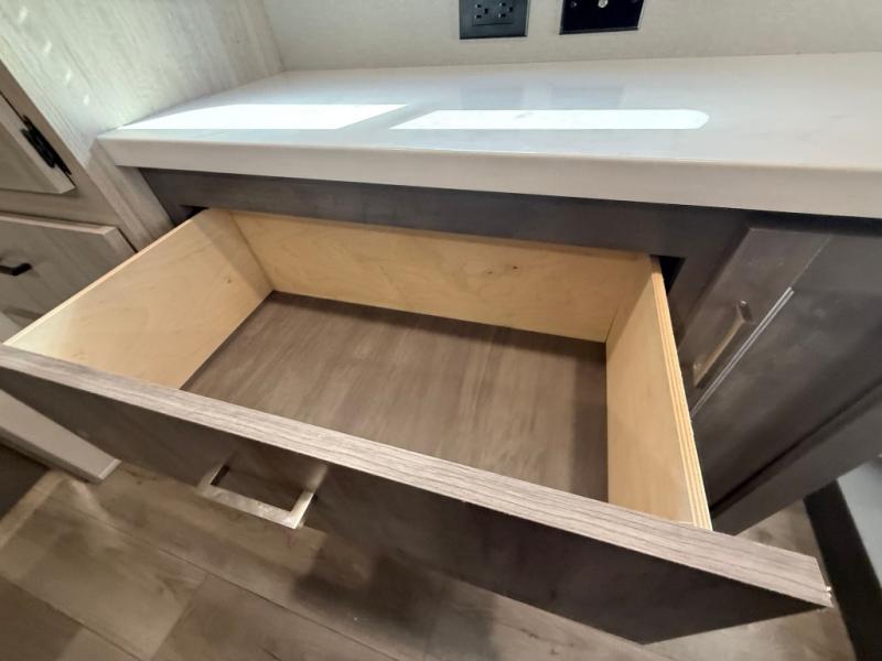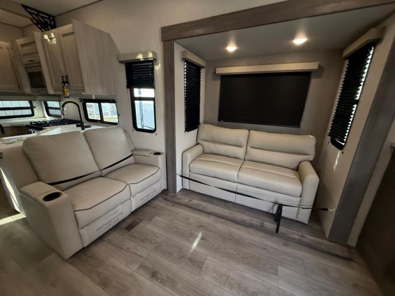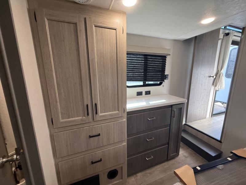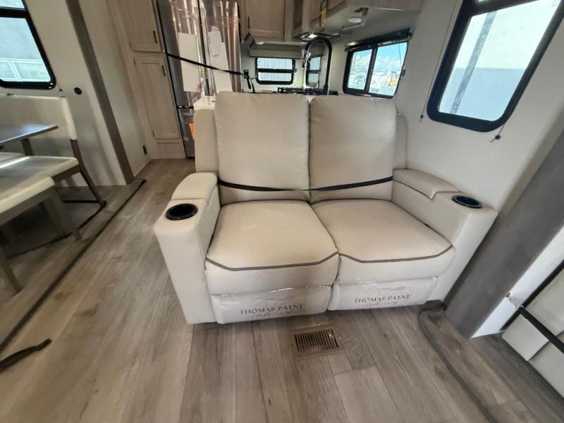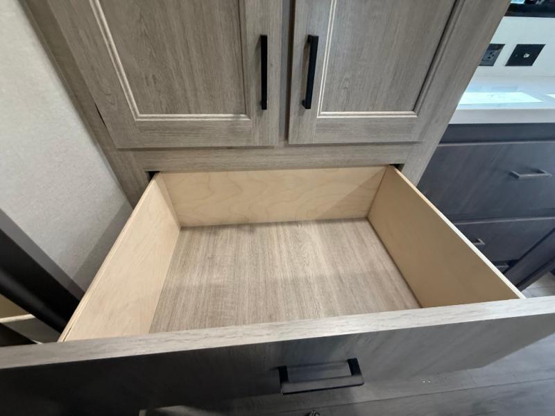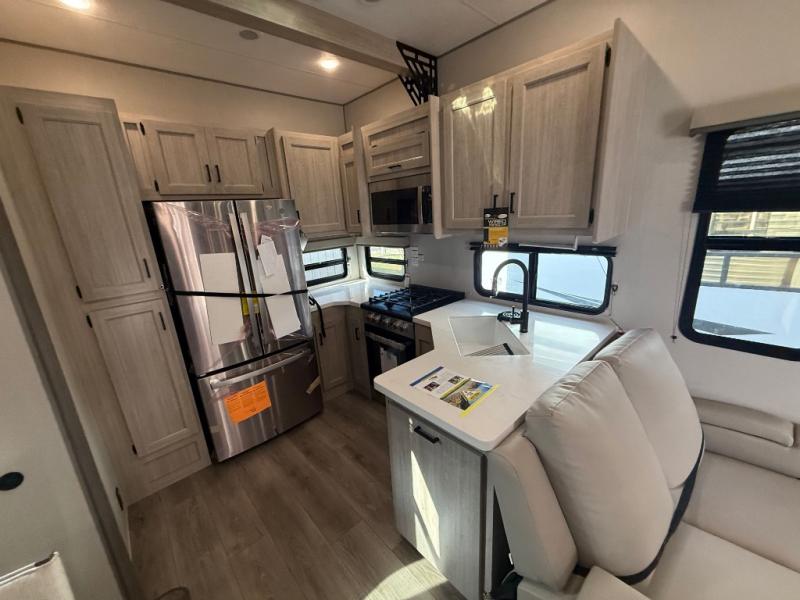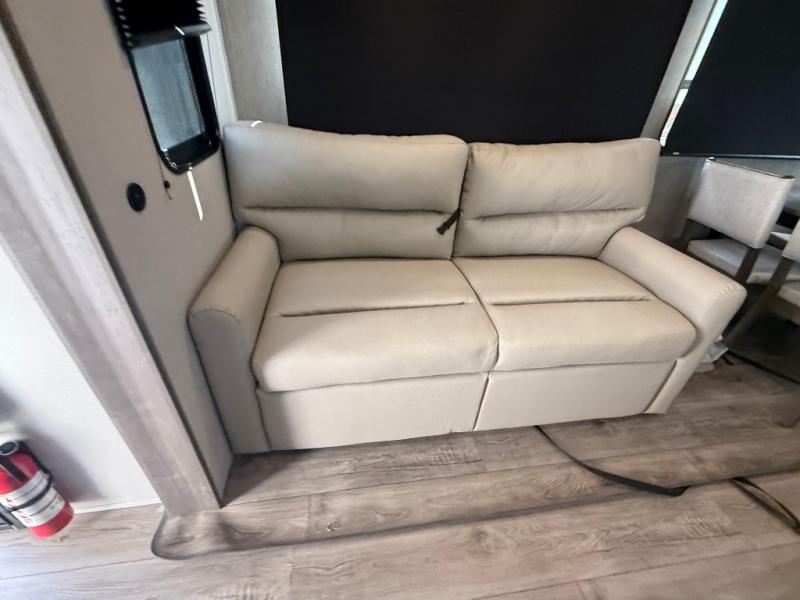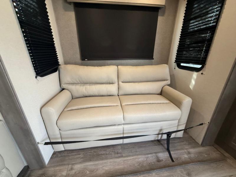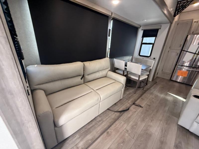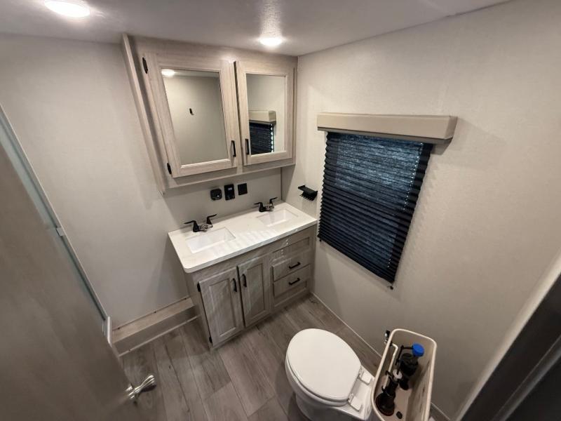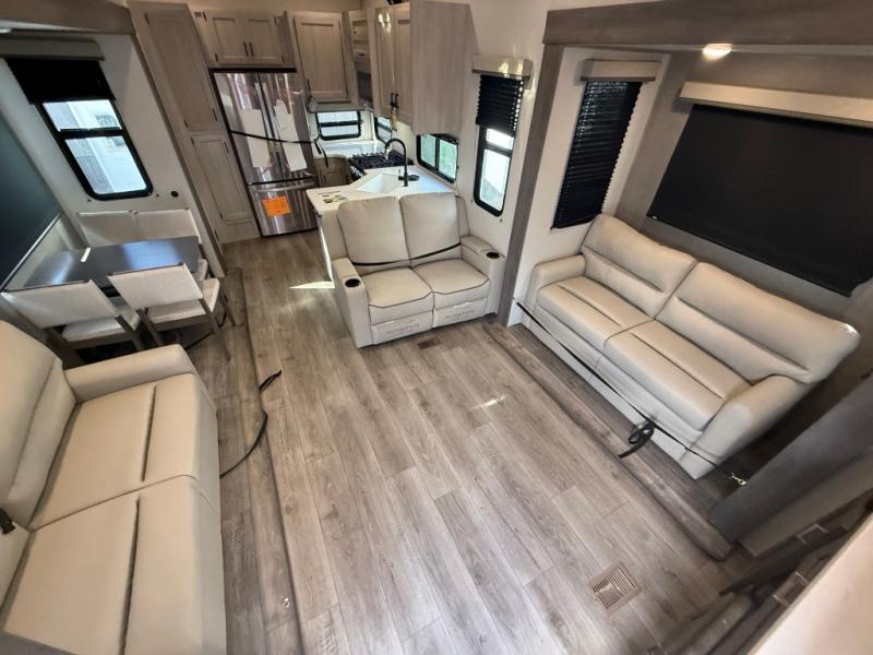 If you want to get out of the house without missing the comfort, you will love this destination trailer! Feel at home the moment you step in through the patio door and head to the open living area with double slide-outs making room for tons of seating areas to enjoy quality time by the fireplace with your guests. You will fall in love with the residential style kitchen featuring a 4 burner range, french door refrigerator, pantry, and much more to make your favorite recipes on the go. There is no such thing as too many guests when you have a loft that has two queen beds and a 28 x 64 bunk matt to rest. In the main floor you will have a master bedroom all to yourself that has its own private bath offering comfort and convenience at only a few steps away from your king bed.