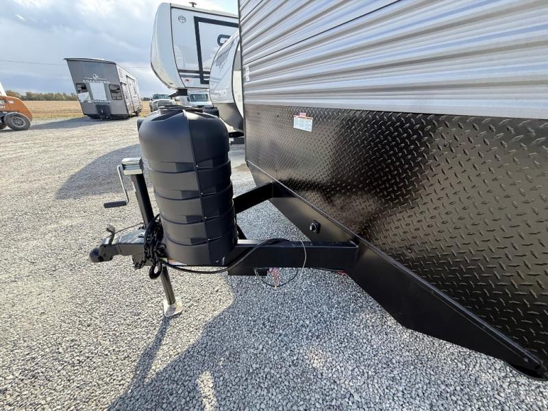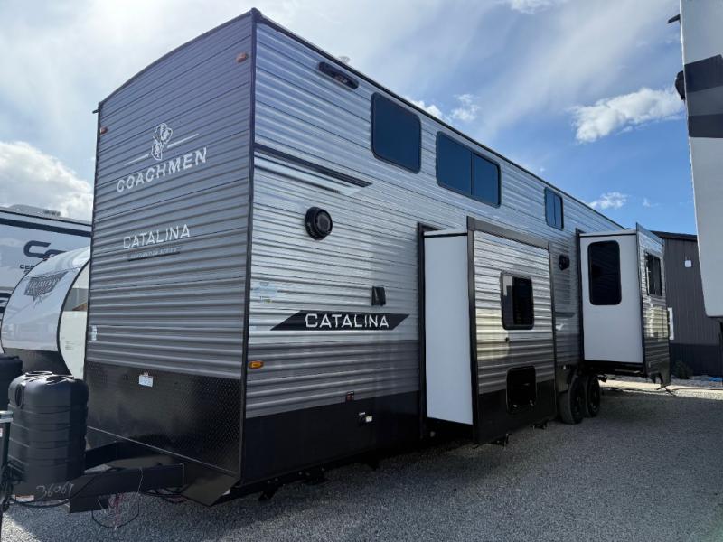 With any Catalina Destination trailer by Coachmen, you will enjoy comfortable extended stays wherever you decide to set up camp! The full length frame outriggers add strength to each unit, along with a seamless Alpha Roof membrane and Norco electromagnetic, powder coated chassis. You will love the open views provided by the residential-style sliding glass patio door, plus there are GE appliances, woodplank linoleum flooring, and hard valance window treatments to make your space feel more like home. Head outside to find a convenient "Leash Link" quick hookup D-ring for your furry friends, premium JBL exterior speakers, flush mount baggage doors for your gear, and the list of amenities goes on!