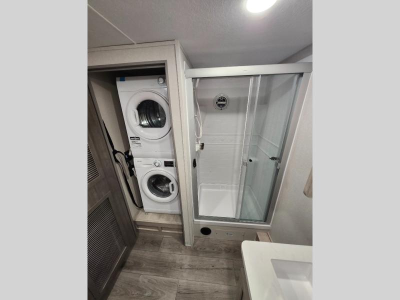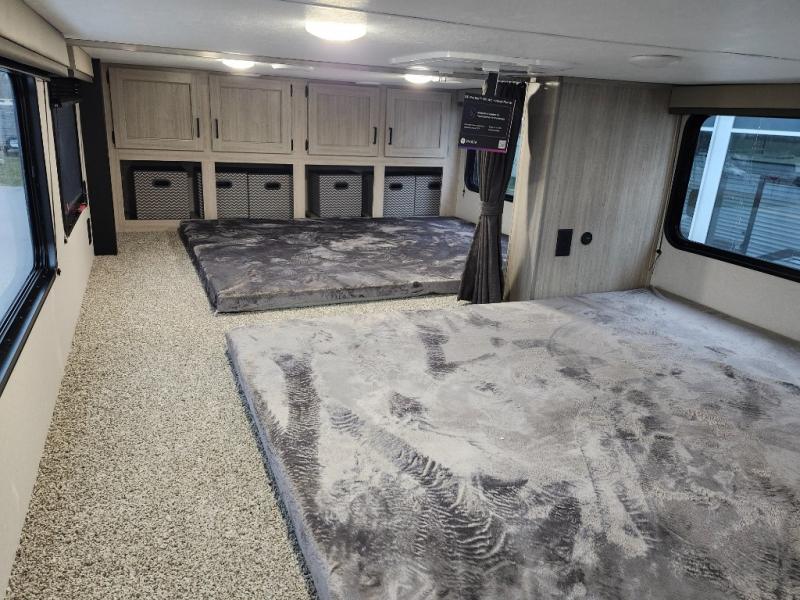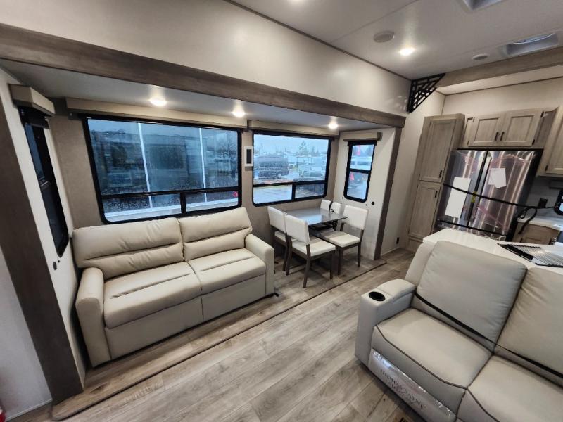 If you want to get out of the house without missing the comfort, you will love this destination trailer! Feel at home the moment you step in through the patio door and head to the open living area with double slide-outs making room for tons of seating areas to enjoy quality time by the fireplace with your guests. You will fall in love with the residential style kitchen featuring a 4 burner range, french door refrigerator, pantry, and much more to make your favorite recipes on the go. There is no such thing as too many guests when you have a loft that has two queen beds and a 28 x 64 bunk matt to rest. In the main floor you will have a master bedroom all to yourself that has its own private bath offering comfort and convenience at only a few steps away from your king bed.