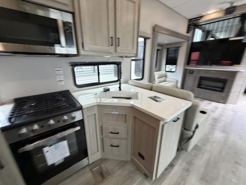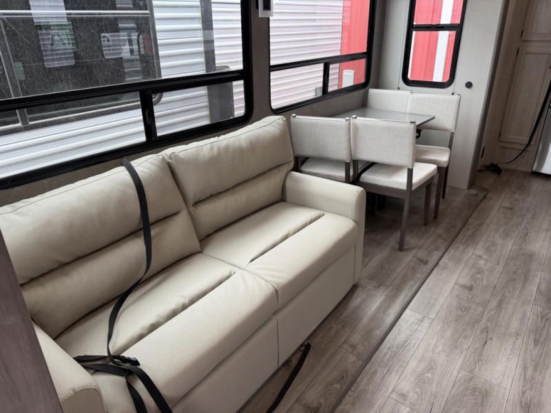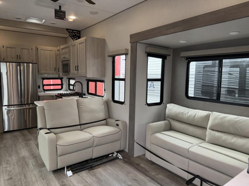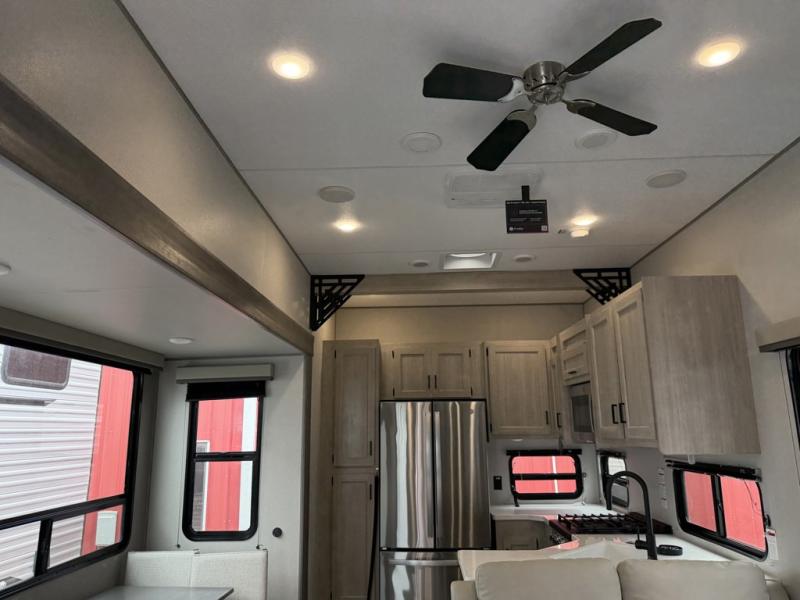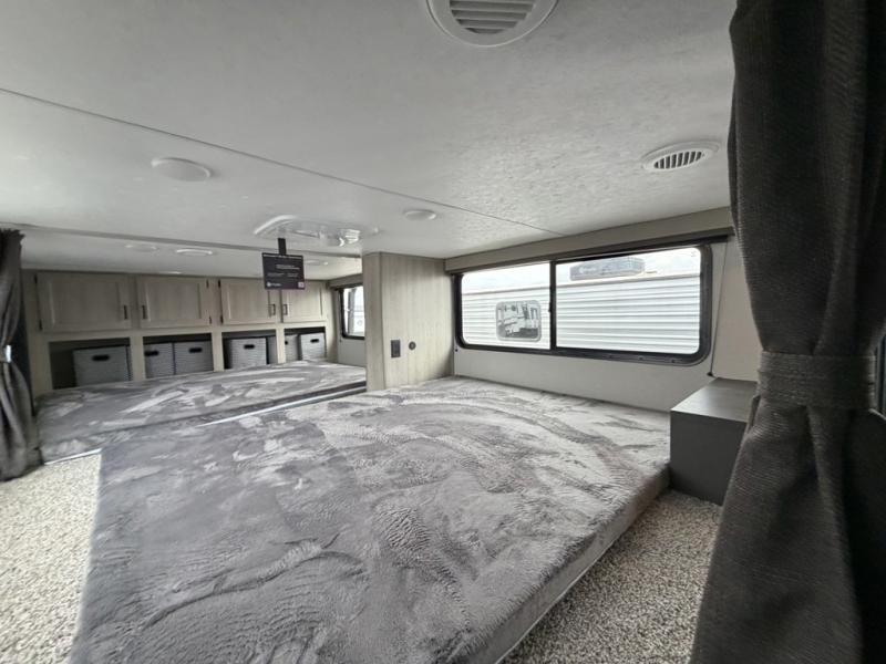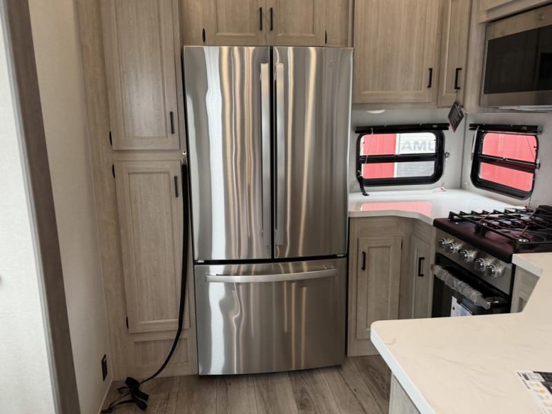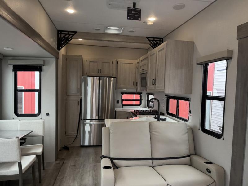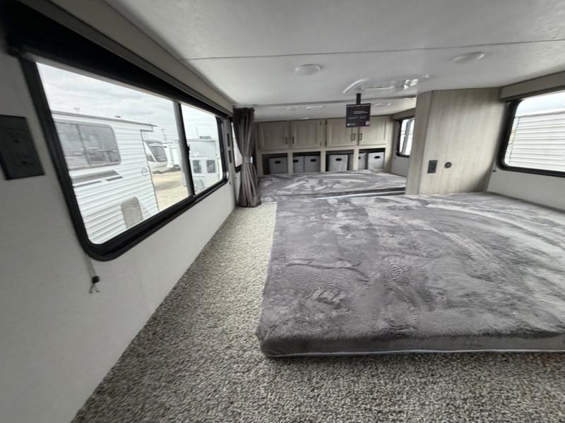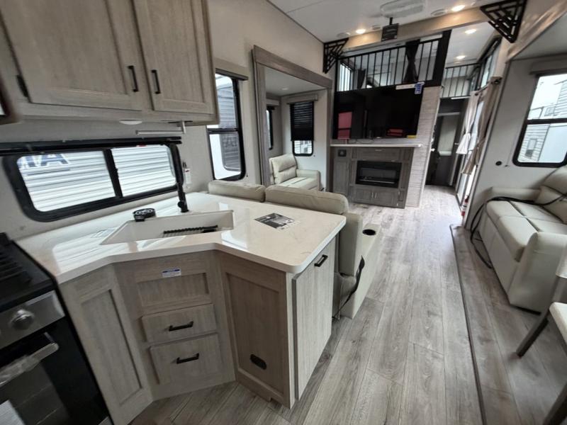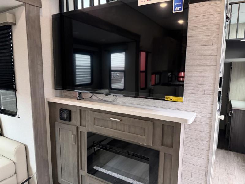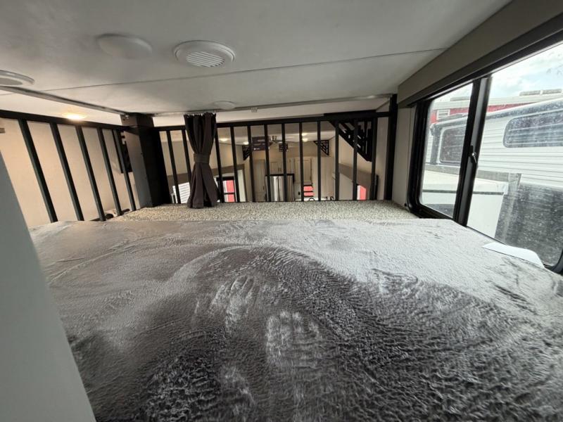 If you want to get out of the house without missing the comfort, you will love this destination trailer! Feel at home the moment you step in through the patio door and head to the open living area with double slide-outs making room for tons of seating areas to enjoy quality time by the fireplace with your guests. You will fall in love with the residential style kitchen featuring a 4 burner range, french door refrigerator, pantry, and much more to make your favorite recipes on the go. There is no such thing as too many guests when you have a loft that has two queen beds and a 28 x 64 bunk matt to rest. In the main floor you will have a master bedroom all to yourself that has its own private bath offering comfort and convenience at only a few steps away from your king bed.