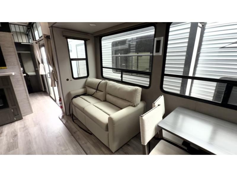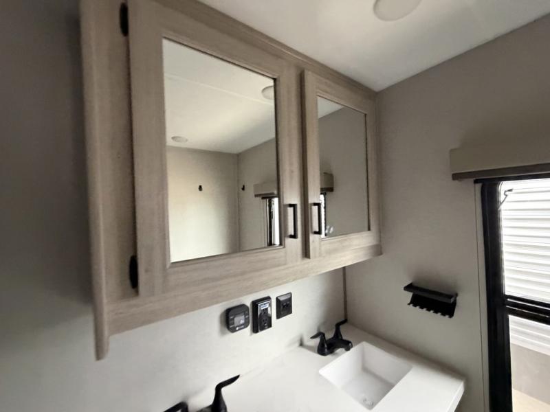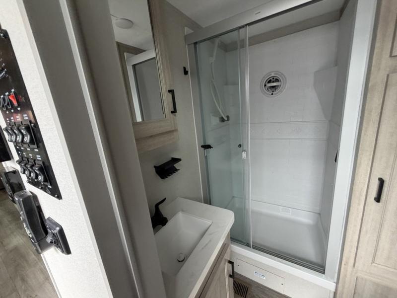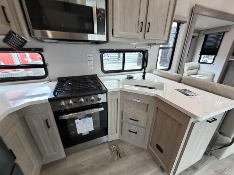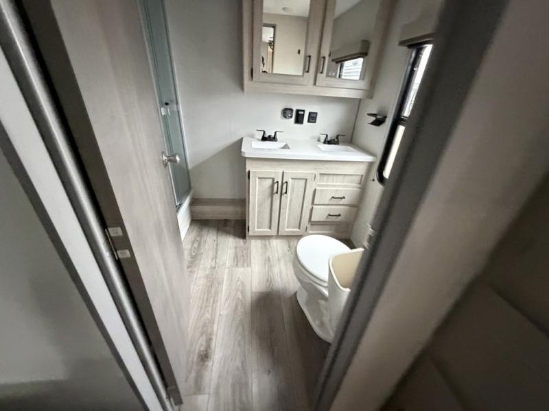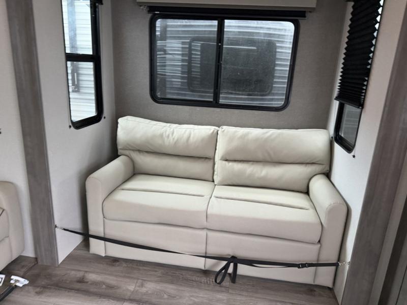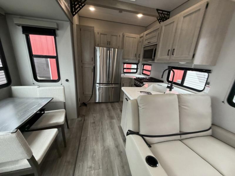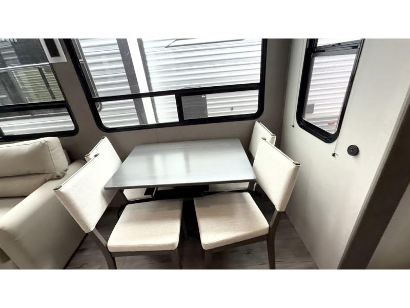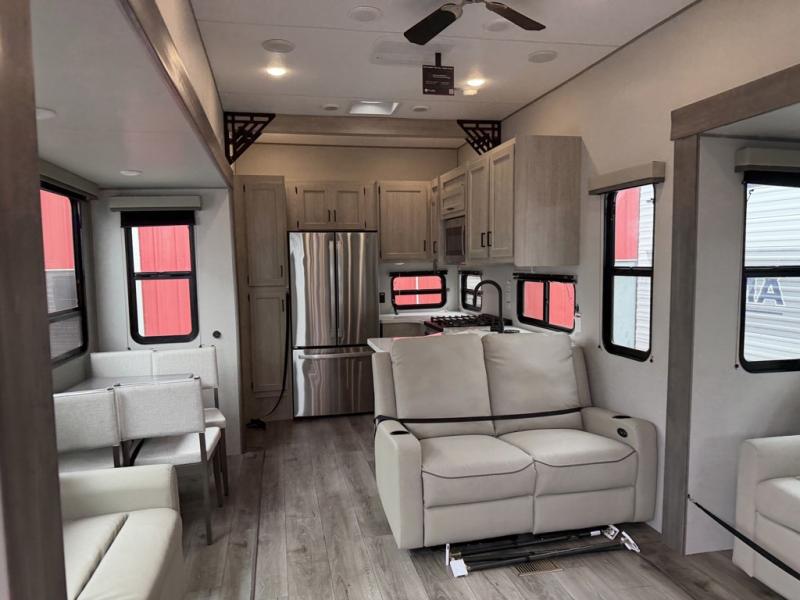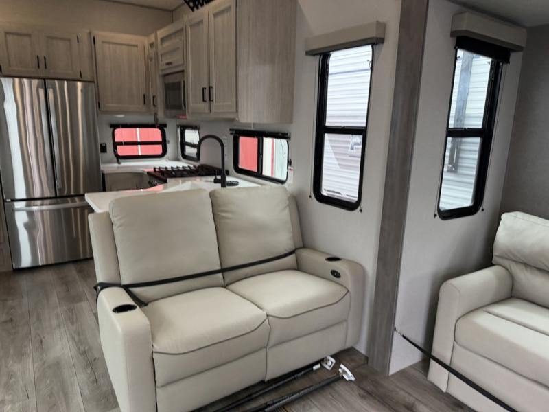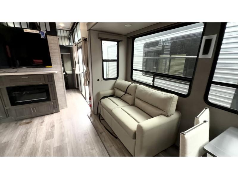 If you want to get out of the house without missing the comfort, you will love this destination trailer! Feel at home the moment you step in through the patio door and head to the open living area with double slide-outs making room for tons of seating areas to enjoy quality time by the fireplace with your guests. You will fall in love with the residential style kitchen featuring a 4 burner range, french door refrigerator, pantry, and much more to make your favorite recipes on the go. There is no such thing as too many guests when you have a loft that has two queen beds and a 28 x 64 bunk matt to rest. In the main floor you will have a master bedroom all to yourself that has its own private bath offering comfort and convenience at only a few steps away from your king bed.