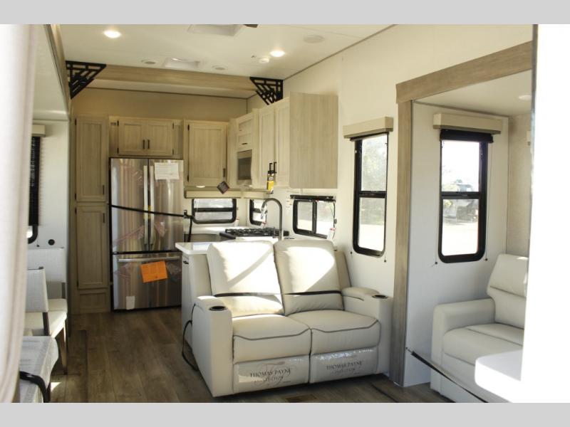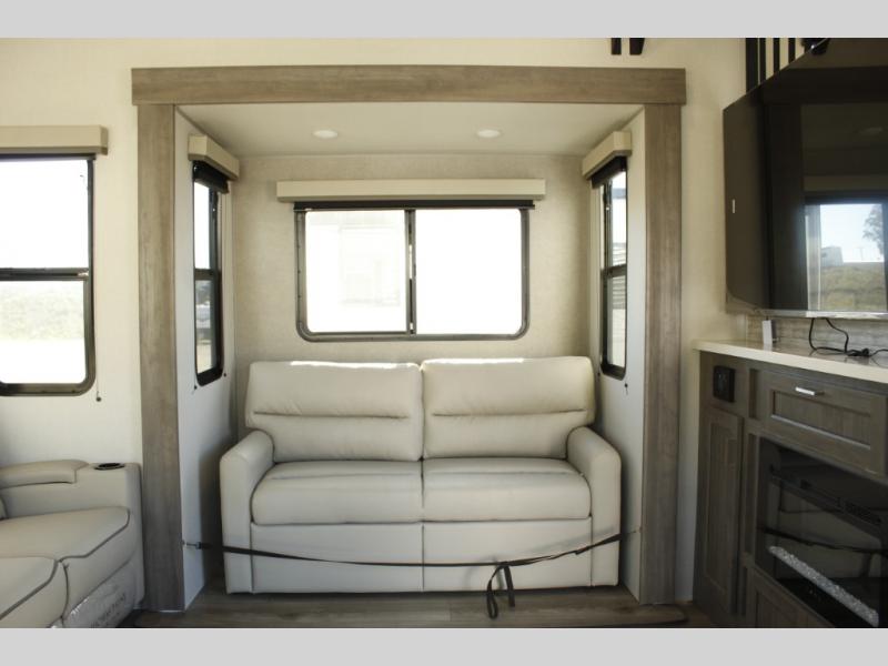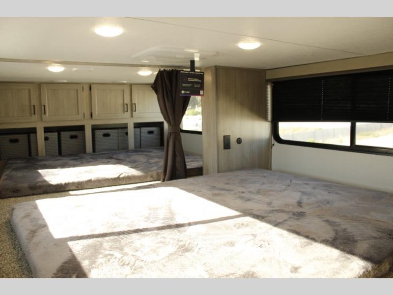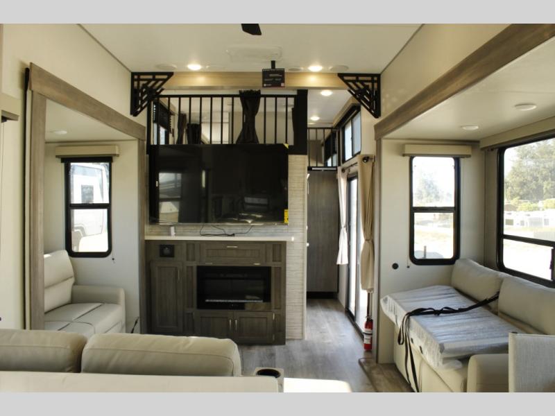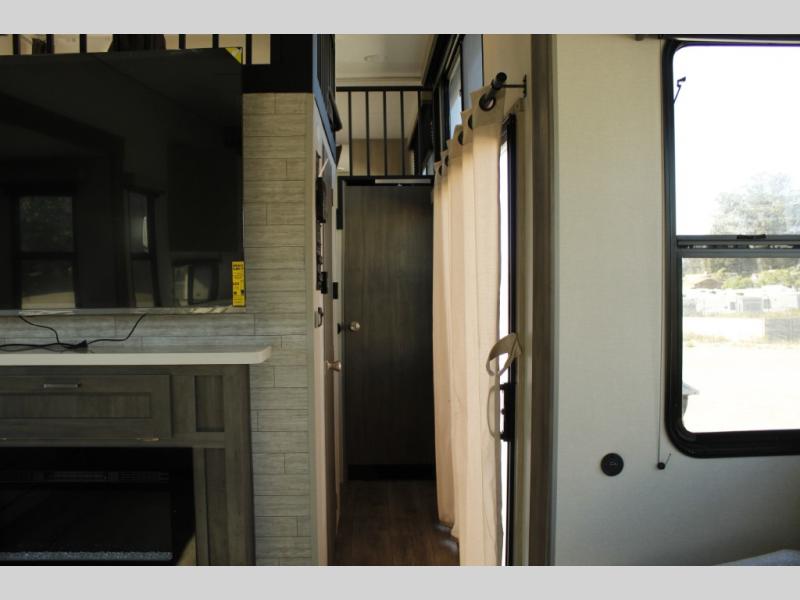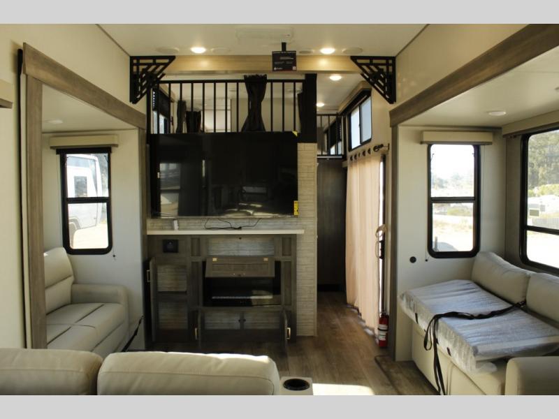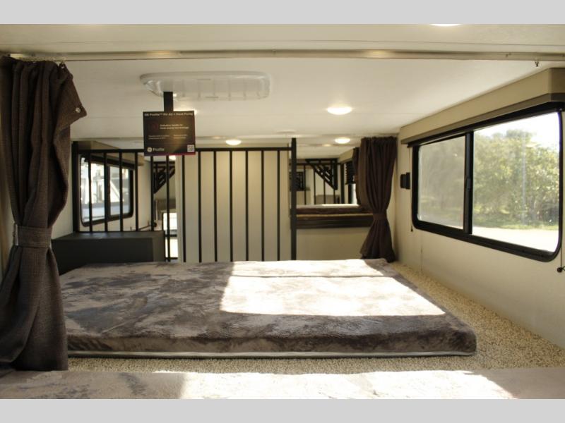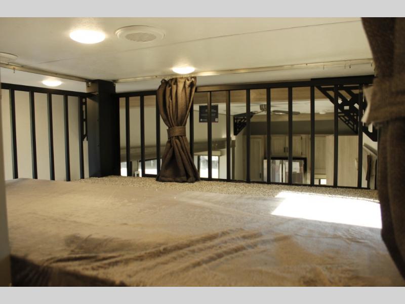 If you want to get out of the house without missing the comfort, you will love this destination trailer! Feel at home the moment you step in through the patio door and head to the open living area with double slide-outs making room for tons of seating areas to enjoy quality time by the fireplace with your guests. You will fall in love with the residential style kitchen featuring a 4 burner range, french door refrigerator, pantry, and much more to make your favorite recipes on the go. There is no such thing as too many guests when you have a loft that has two queen beds and a 28 x 64 bunk matt to rest. In the main floor you will have a master bedroom all to yourself that has its own private bath offering comfort and convenience at only a few steps away from your king bed.