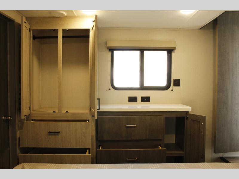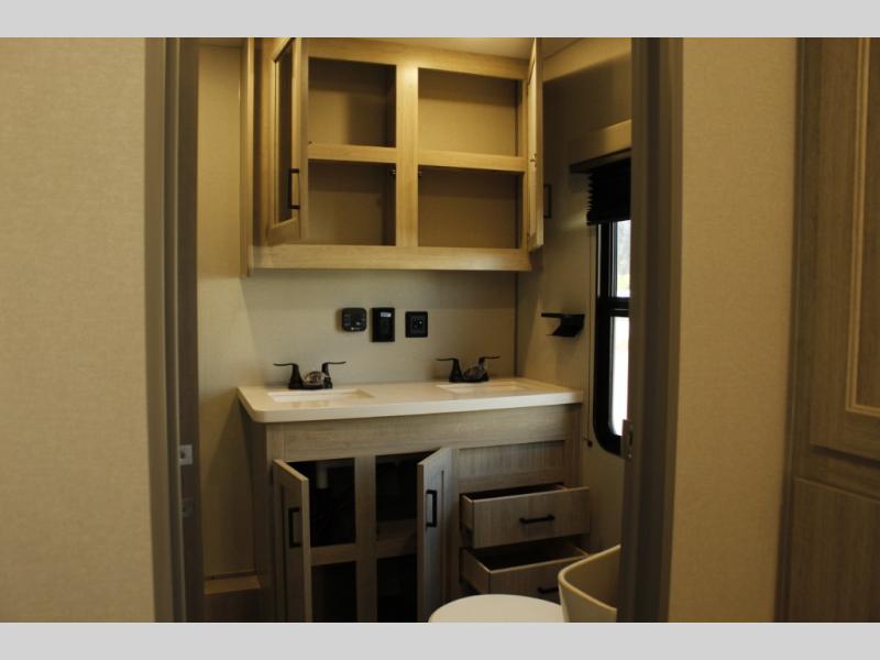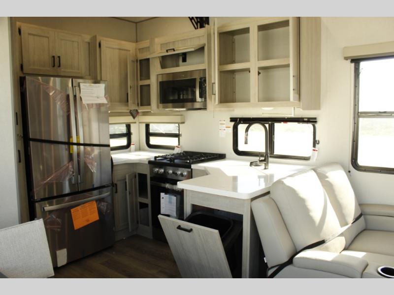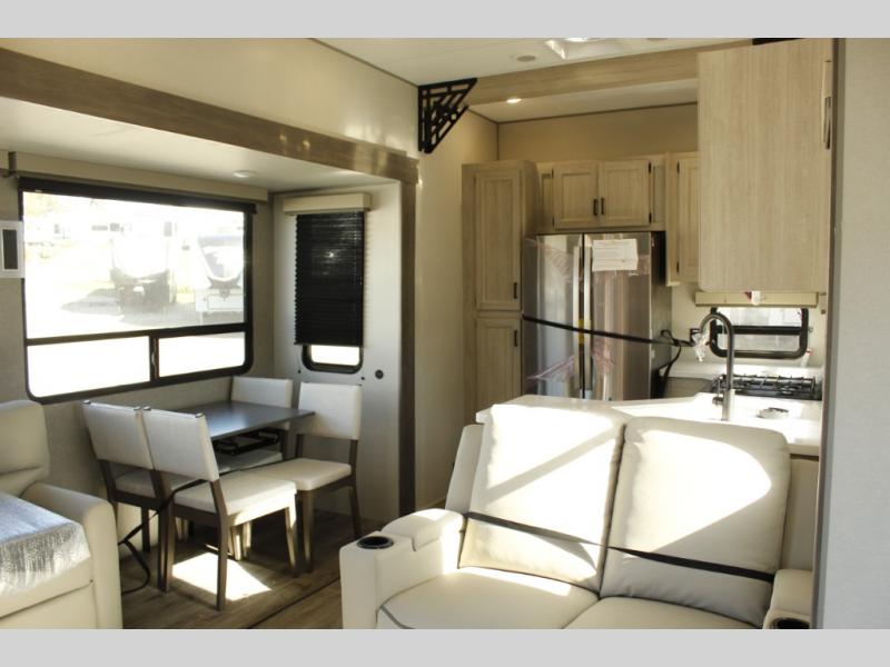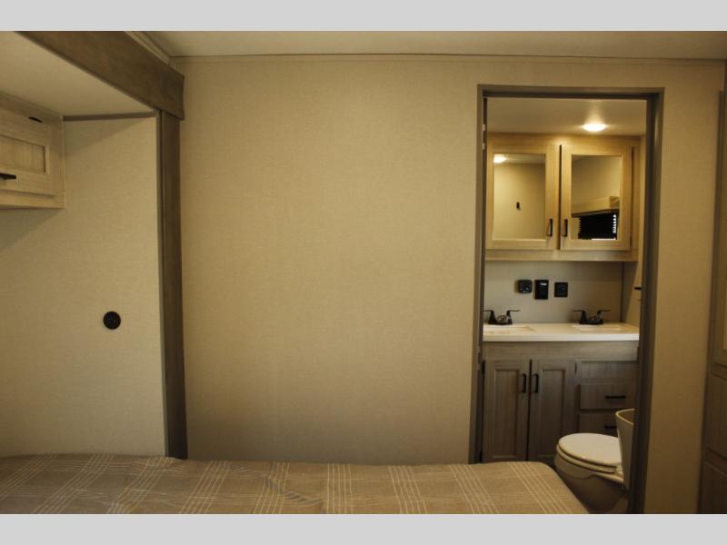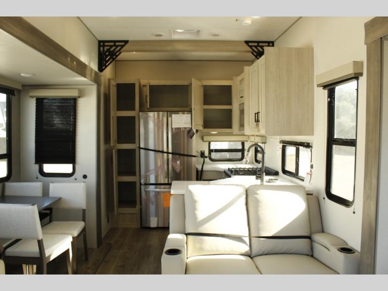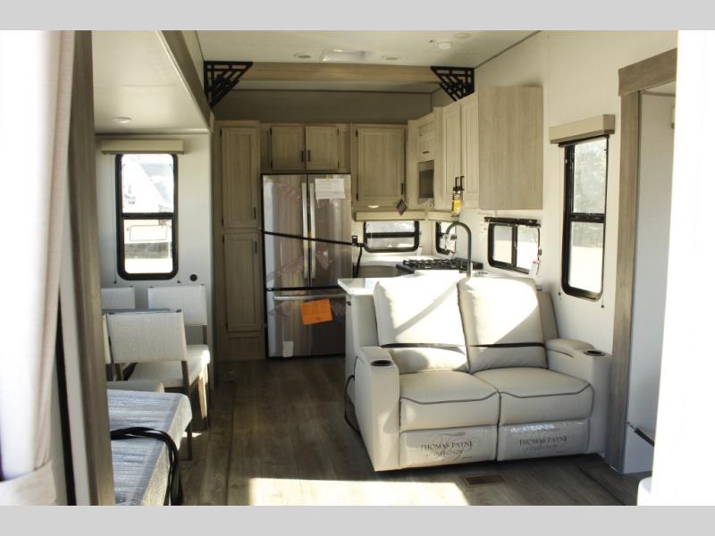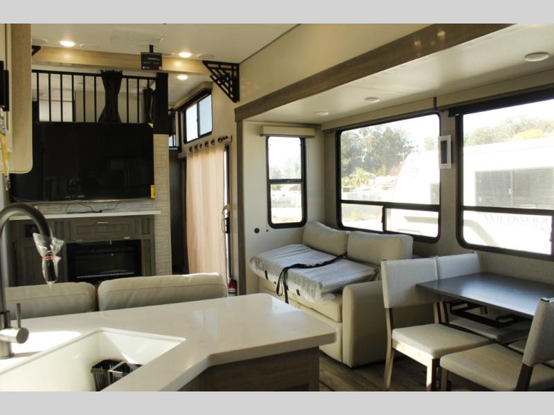 If you want to get out of the house without missing the comfort, you will love this destination trailer! Feel at home the moment you step in through the patio door and head to the open living area with double slide-outs making room for tons of seating areas to enjoy quality time by the fireplace with your guests. You will fall in love with the residential style kitchen featuring a 4 burner range, french door refrigerator, pantry, and much more to make your favorite recipes on the go. There is no such thing as too many guests when you have a loft that has two queen beds and a 28 x 64 bunk matt to rest. In the main floor you will have a master bedroom all to yourself that has its own private bath offering comfort and convenience at only a few steps away from your king bed.