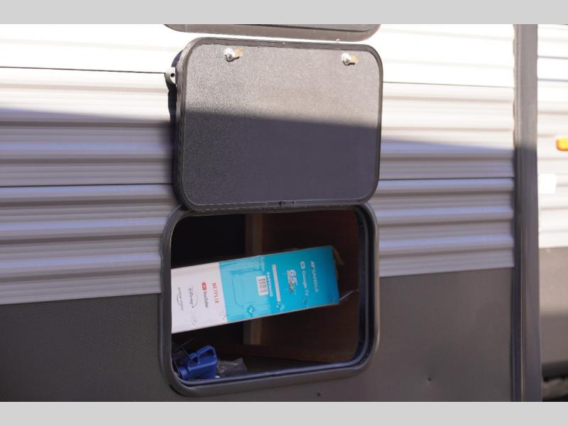 With any Catalina Destination trailer by Coachmen, you will enjoy comfortable extended stays wherever you decide to set up camp! The full length frame outriggers add strength to each unit, along with a seamless Alpha Roof membrane and Norco electromagnetic, powder coated chassis. You will love the open views provided by the residential-style sliding glass patio door, plus there are GE appliances, woodplank linoleum flooring, and hard valance window treatments to make your space feel more like home. Head outside to find a convenient "Leash Link" quick hookup D-ring for your furry friends, premium JBL exterior speakers, flush mount baggage doors for your gear, and the list of amenities goes on!