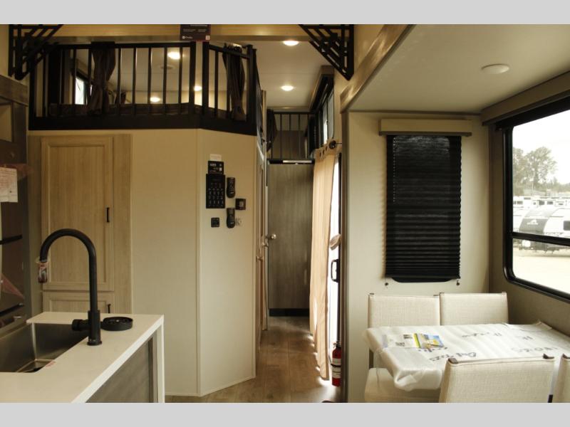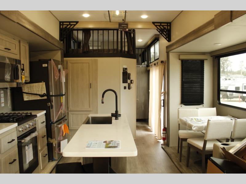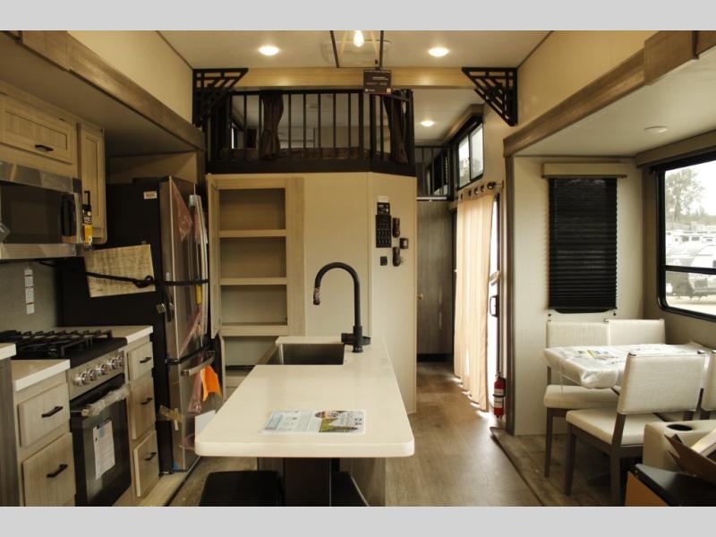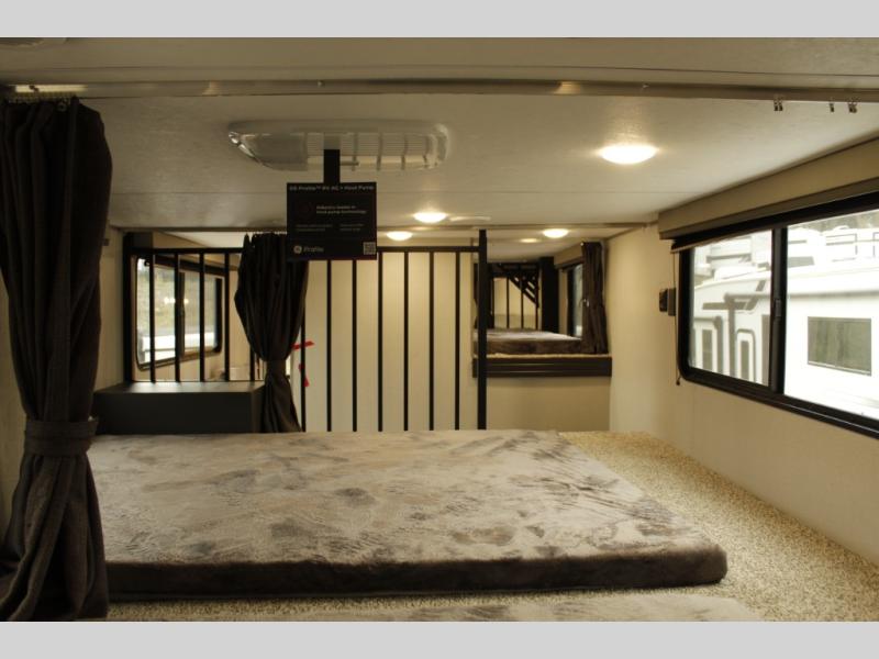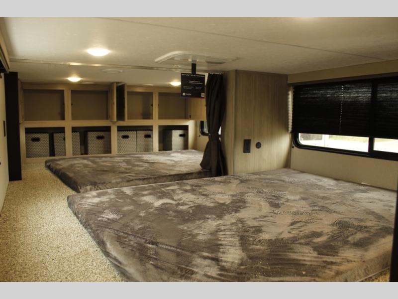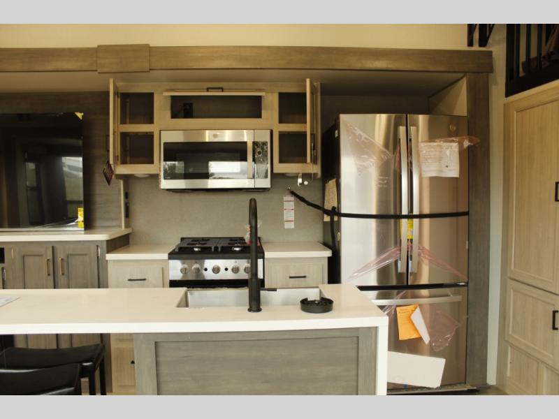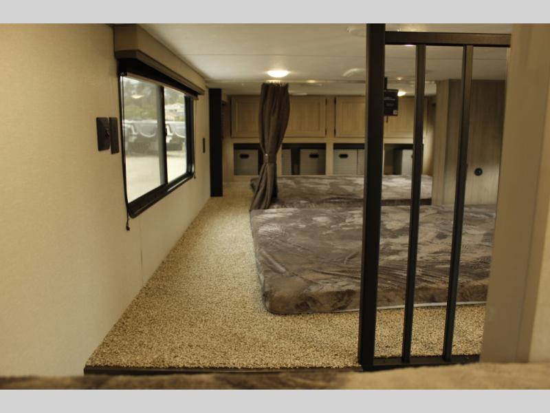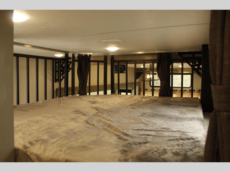 If you want to get out of the house without missing the comfort, you will love this destination trailer! Feel at home the moment you step in through the patio door and head to the open living area with double slide-outs making room for tons of seating areas to enjoy quality time by the fireplace with your guests. You will fall in love with the residential style kitchen featuring a 4 burner range, french door refrigerator, pantry, and much more to make your favorite recipes on the go. There is no such thing as too many guests when you have a loft that has two queen beds and a 28 x 64 bunk matt to rest. In the main floor you will have a master bedroom all to yourself that has its own private bath offering comfort and convenience at only a few steps away from your king bed.