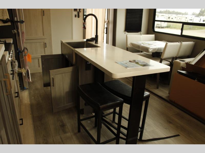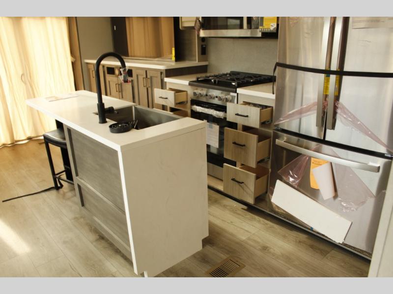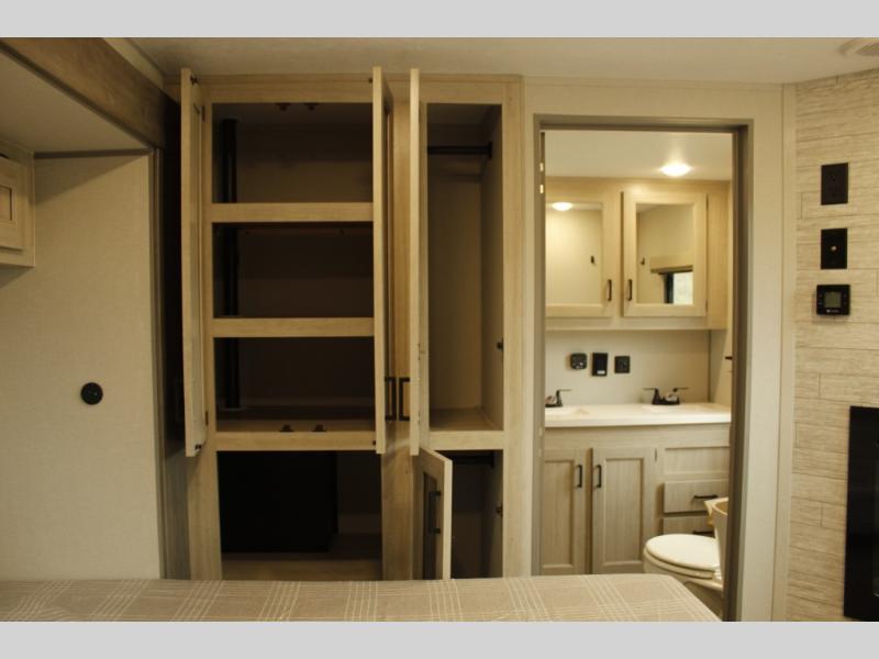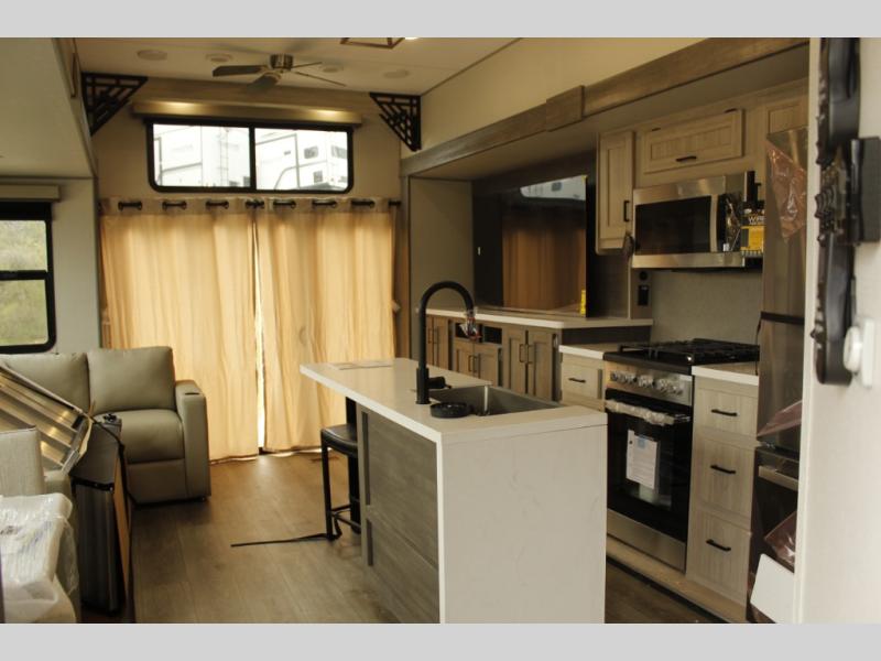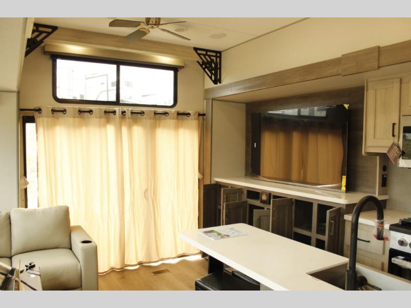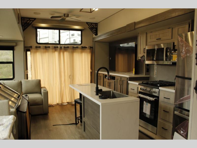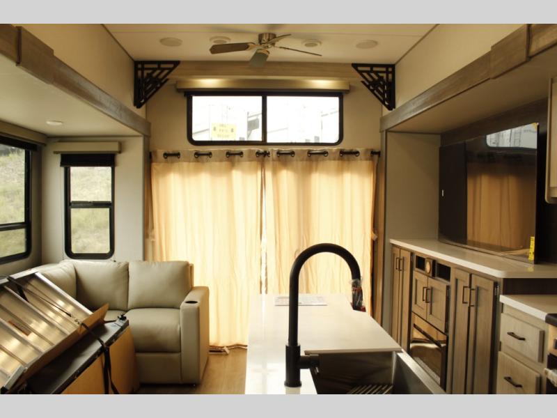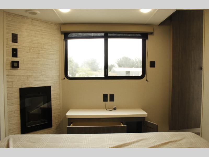 If you want to get out of the house without missing the comfort, you will love this destination trailer! Feel at home the moment you step in through the patio door and head to the open living area with double slide-outs making room for tons of seating areas to enjoy quality time by the fireplace with your guests. You will fall in love with the residential style kitchen featuring a 4 burner range, french door refrigerator, pantry, and much more to make your favorite recipes on the go. There is no such thing as too many guests when you have a loft that has two queen beds and a 28 x 64 bunk matt to rest. In the main floor you will have a master bedroom all to yourself that has its own private bath offering comfort and convenience at only a few steps away from your king bed.