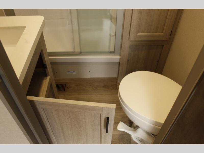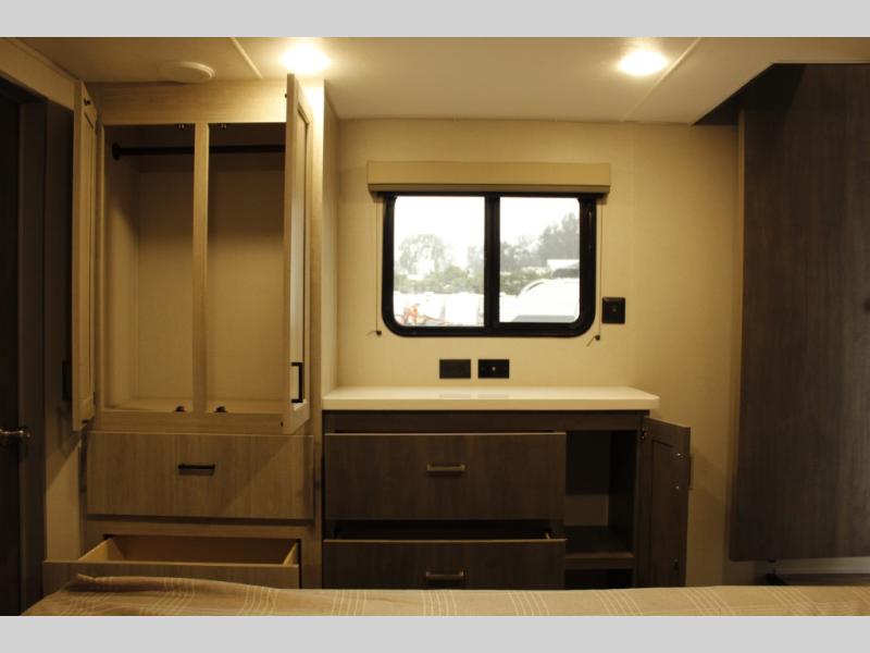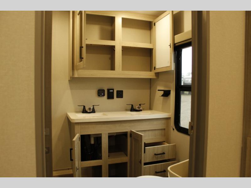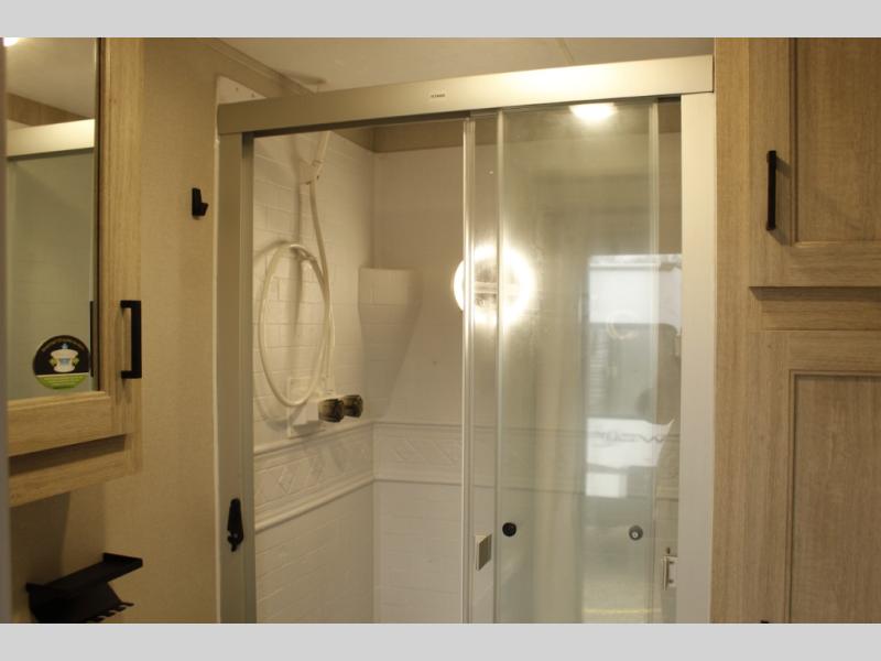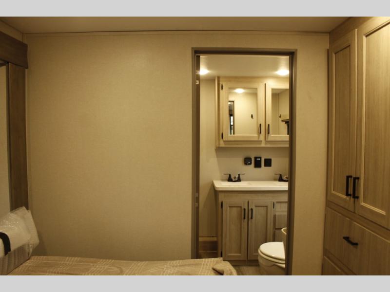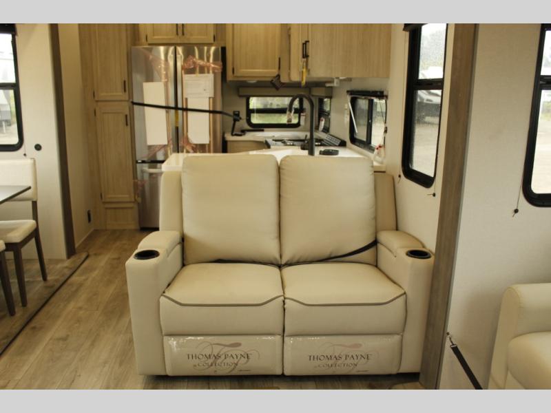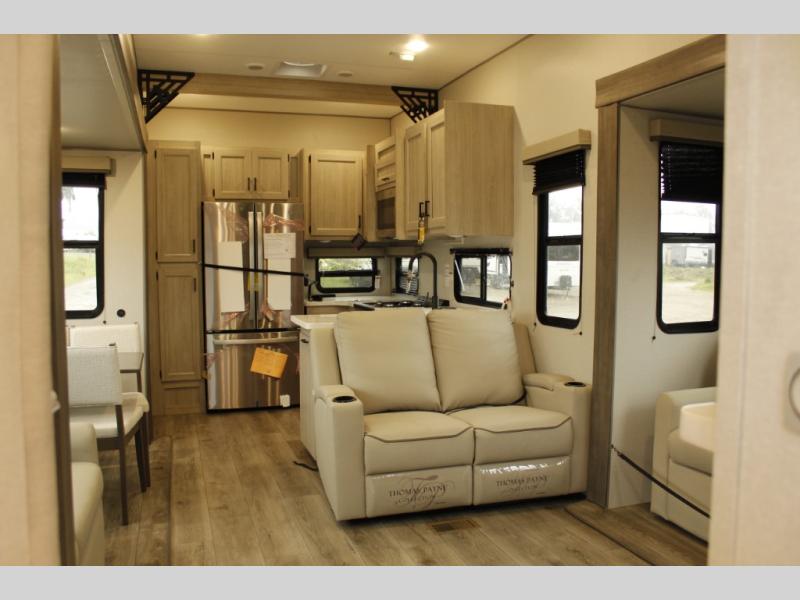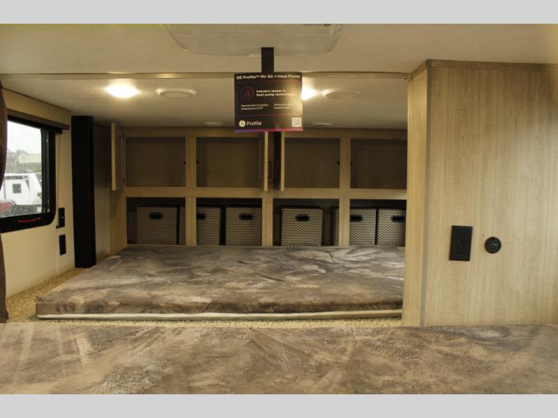 If you want to get out of the house without missing the comfort, you will love this destination trailer! Feel at home the moment you step in through the patio door and head to the open living area with double slide-outs making room for tons of seating areas to enjoy quality time by the fireplace with your guests. You will fall in love with the residential style kitchen featuring a 4 burner range, french door refrigerator, pantry, and much more to make your favorite recipes on the go. There is no such thing as too many guests when you have a loft that has two queen beds and a 28 x 64 bunk matt to rest. In the main floor you will have a master bedroom all to yourself that has its own private bath offering comfort and convenience at only a few steps away from your king bed.