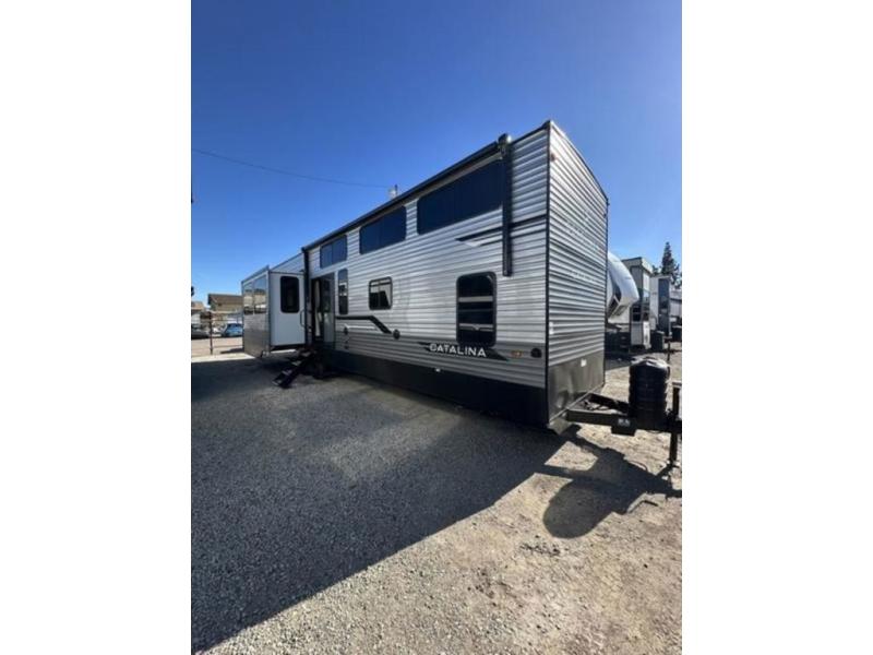 With any Catalina Destination trailer by Coachmen, you will enjoy comfortable extended stays wherever you decide to set up camp! The full length frame outriggers add strength to each unit, along with a seamless Alpha Roof membrane and Norco electromagnetic, powder coated chassis. You will love the open views provided by the residential-style sliding glass patio door, plus there are GE appliances, woodplank linoleum flooring, and hard valance window treatments to make your space feel more like home. Head outside to find a convenient "Leash Link" quick hookup D-ring for your furry friends, premium JBL exterior speakers, flush mount baggage doors for your gear, and the list of amenities goes on!