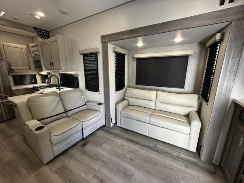 If you want to get out of the house without missing the comfort, you will love this destination trailer! Feel at home the moment you step in through the patio door and head to the open living area with double slide-outs making room for tons of seating areas to enjoy quality time by the fireplace with your guests. You will fall in love with the residential style kitchen featuring a 4 burner range, french door refrigerator, pantry, and much more to make your favorite recipes on the go. There is no such thing as too many guests when you have a loft that has two queen beds and a 28 x 64 bunk matt to rest. In the main floor you will have a master bedroom all to yourself that has its own private bath offering comfort and convenience at only a few steps away from your king bed.