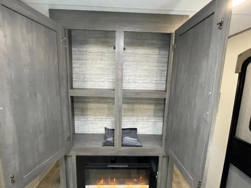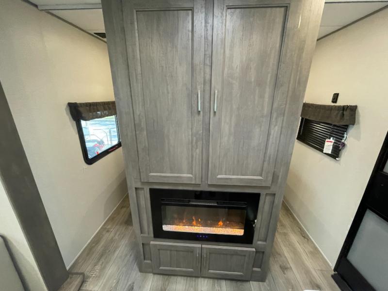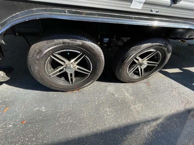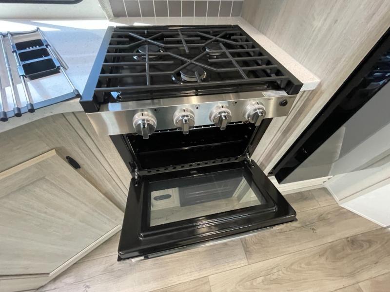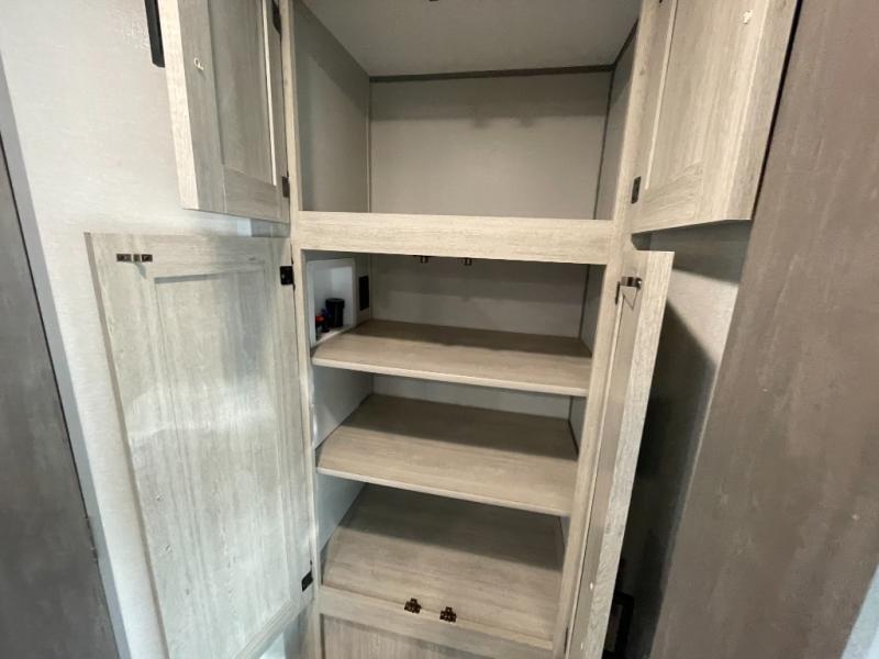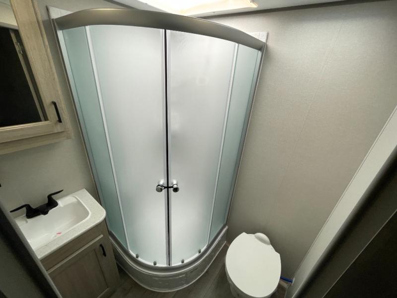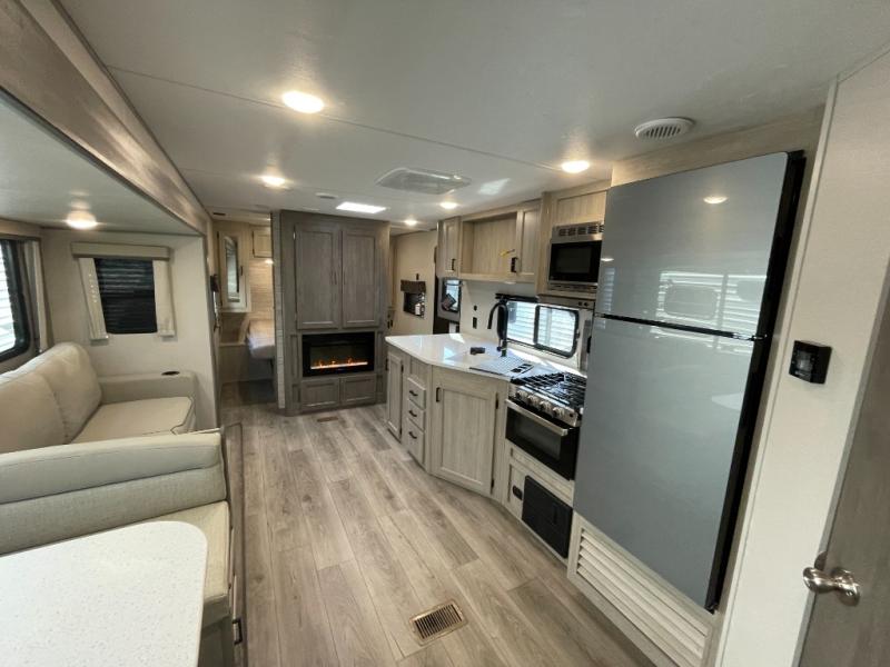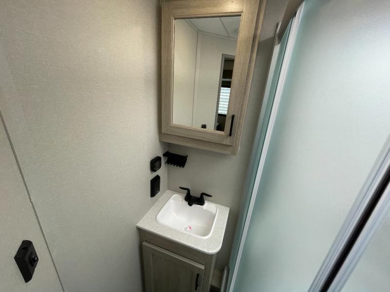 This half-ton friendly trailer is easy to pull and park and is spacious thanks to the large slide out in the main living and kitchen area! You can dine at the booth dinette or choose the free-standing dinette option, and the trundle sofa offers drink holders for your drink when you're relaxing. The rear corner offers a full bathroom and a large wardrobe/pantry for the storage you need. The galley kitchen offers full amenities plus a breakfast bar where you can set out fresh fruit and cereal. And the 15' awning provides protection from the elements plus has the choice of multiple LED colors with the use of the remote.