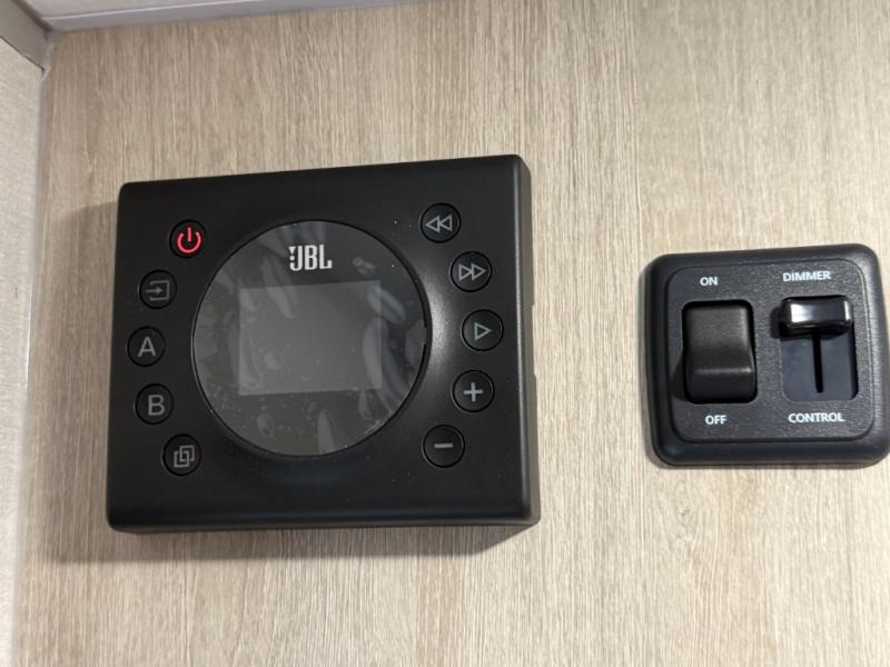 Premium JBL Aura Cube multi-zone stereo, interior and exterior speakers, and an All-In-One control panel with dimmers