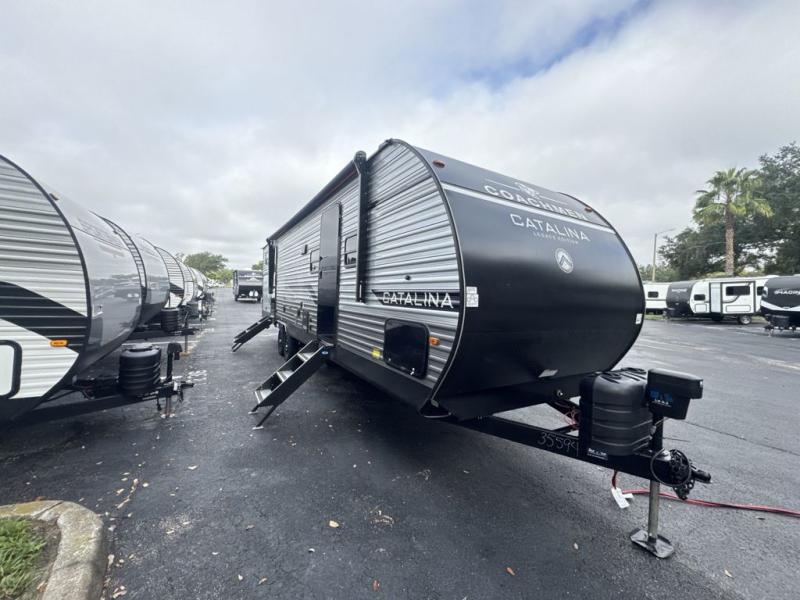 Each Catalina Legacy travel trailer by Coachmen is constructed with a cambered structural steel I-beam frame for added strength and support, plus an enclosed and fully sealed corrugated underbelly to extend your camping season. There is also a seamless Alpha roof membrane, R-7 insulation throughout, full length frame outriggers, plus many more durable construction materials. You will love the 6' 9" interior height, along with Congoleum woodplank linoleum flooring, solid surface kitchen countertops, and hard valance window treatments. Choose a Catalina Legacy today!