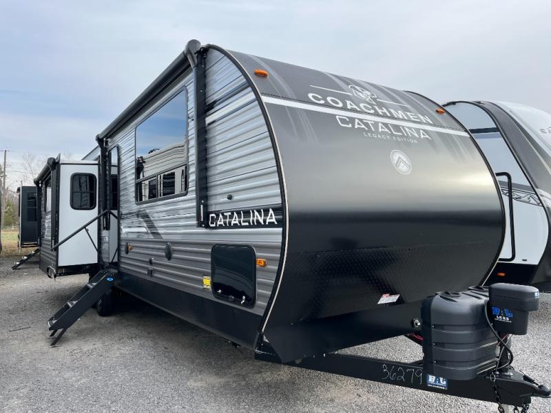 Each Catalina Legacy travel trailer by Coachmen is constructed with a cambered structural steel I-beam frame for added strength and support, plus an enclosed and fully sealed corrugated underbelly to extend your camping season. There is also a seamless Alpha roof membrane, R-7 insulation throughout, full length frame outriggers, plus many more durable construction materials. You will love the 6' 9" interior height, along with Congoleum woodplank linoleum flooring, solid surface kitchen countertops, and hard valance window treatments. Choose a Catalina Legacy today!
