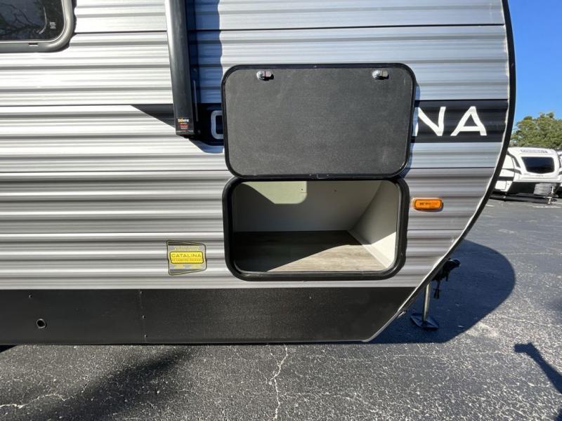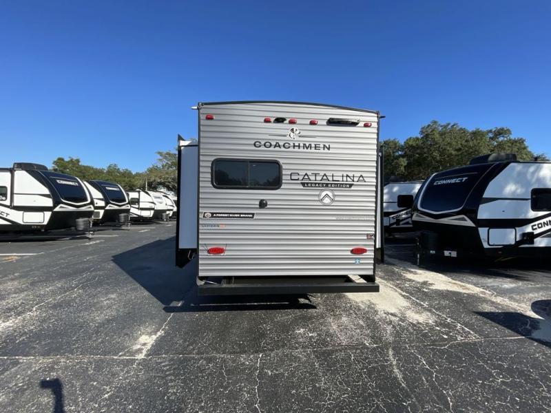 Each Catalina Legacy travel trailer by Coachmen is constructed with a cambered structural steel I-beam frame for added strength and support, plus an enclosed and fully sealed corrugated underbelly to extend your camping season. There is also a seamless Alpha roof membrane, R-7 insulation throughout, full length frame outriggers, plus many more durable construction materials. You will love the 6' 9" interior height, along with Congoleum woodplank linoleum flooring, solid surface kitchen countertops, and hard valance window treatments. Choose a Catalina Legacy today!