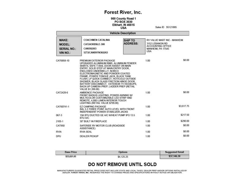 | Awning Info | 18' Electric w/Multicolor LED Strip & Remote |