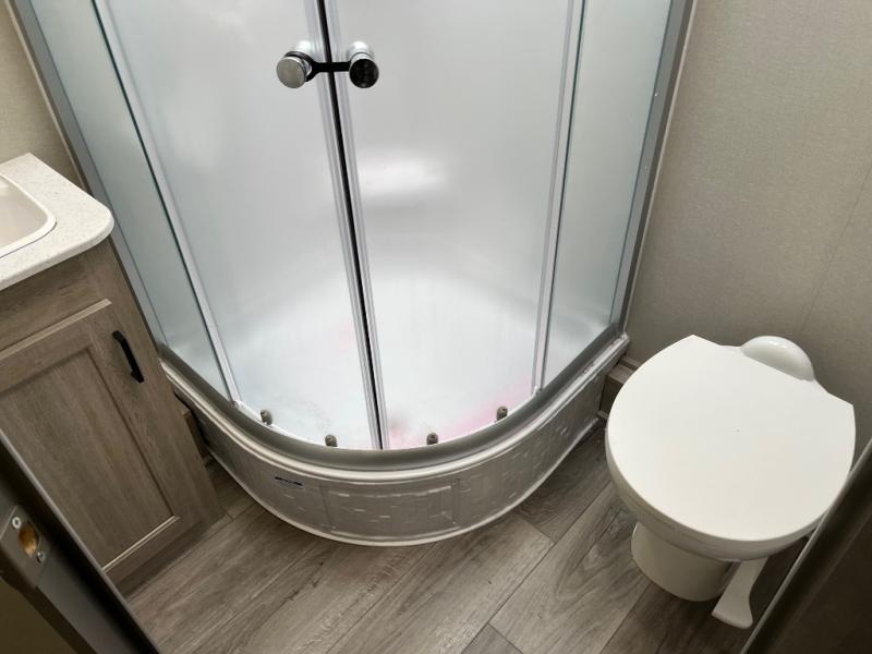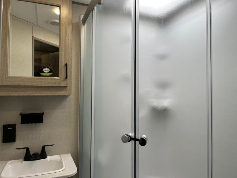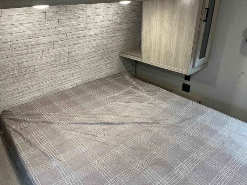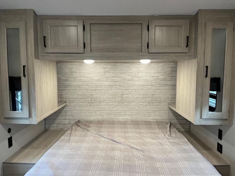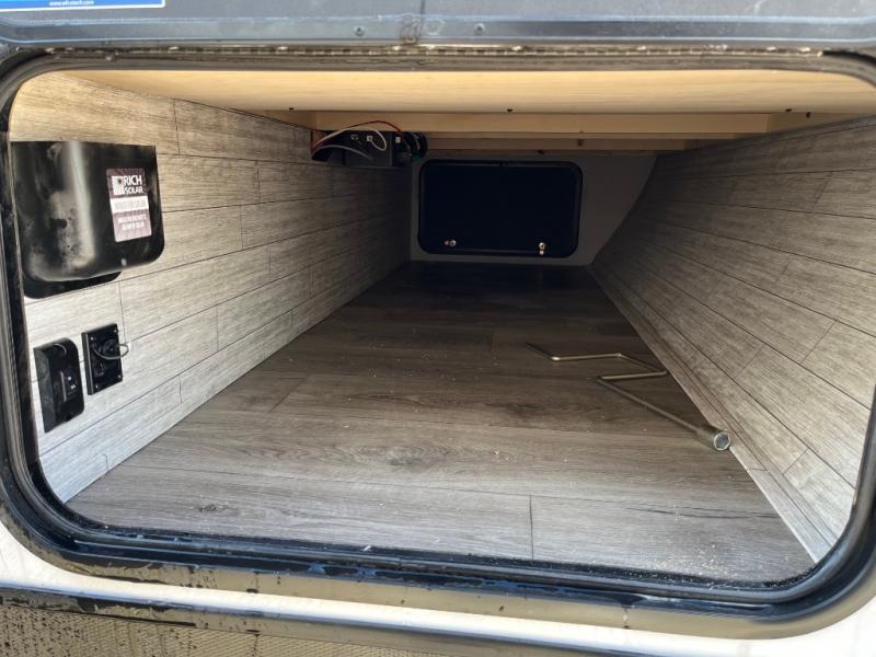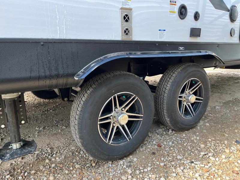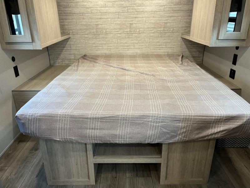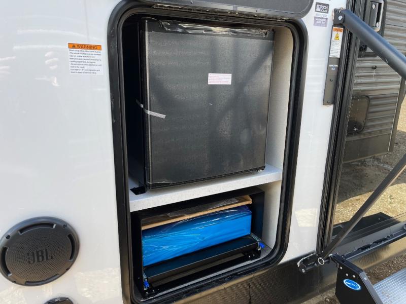 This half-ton friendly trailer is easy to pull and park and is spacious thanks to the large slide out in the main living and kitchen area! You can dine at the booth dinette or choose the free-standing dinette option, and the trundle sofa offers drink holders for your drink when you're relaxing. The rear corner offers a full bathroom and a large wardrobe/pantry for the storage you need. The galley kitchen offers full amenities plus a breakfast bar where you can set out fresh fruit and cereal. And the 15' awning provides protection from the elements plus has the choice of multiple LED colors with the use of the remote.