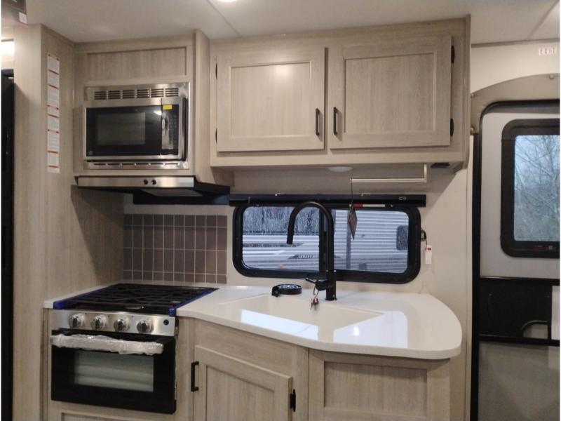 Each Catalina Legacy travel trailer by Coachmen is constructed with a cambered structural steel I-beam frame for added strength and support, plus an enclosed and fully sealed corrugated underbelly to extend your camping season. There is also a seamless Alpha roof membrane, R-7 insulation throughout, full length frame outriggers, plus many more durable construction materials. You will love the 6' 9" interior height, along with Congoleum woodplank linoleum flooring, solid surface kitchen countertops, and hard valance window treatments. Choose a Catalina Legacy today!