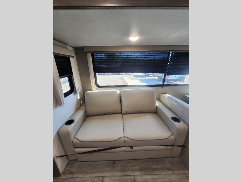 Step into comfort with this front kitchen travel trailer!