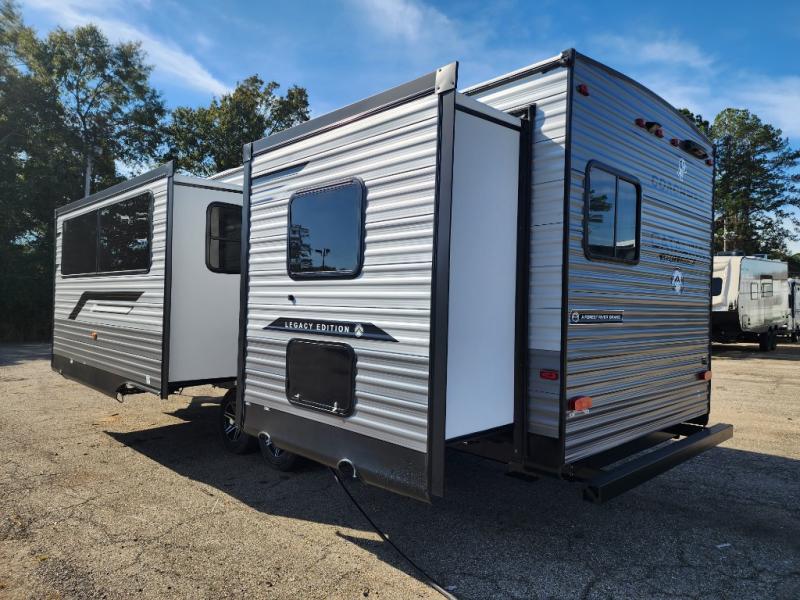 Each Catalina Legacy travel trailer by Coachmen is constructed with a cambered structural steel I-beam frame for added strength and support, plus an enclosed and fully sealed corrugated underbelly to extend your camping season. There is also a seamless Alpha roof membrane, R-7 insulation throughout, full length frame outriggers, plus many more durable construction materials. You will love the 6' 9" interior height, along with Congoleum woodplank linoleum flooring, solid surface kitchen countertops, and hard valance window treatments. Choose a Catalina Legacy today!