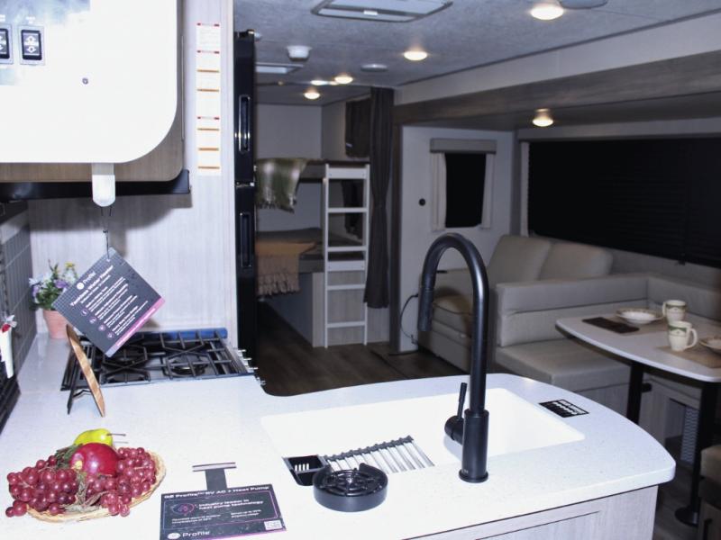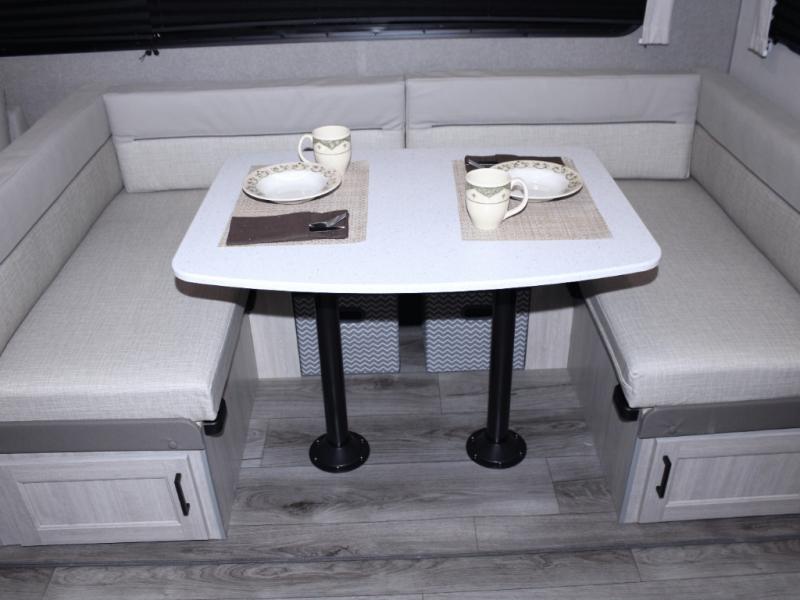 Designed with families and friend groups in mind, the 273DBH features double-size rear bunks, a private front RV queen bed, and a large U-shaped dinette that converts into extra sleeping space. There's even a cozy trundle sofa—perfect for movie nights or unexpected guests. With the ability to comfortably sleep 8-10 people, this RV is built for making memories.
