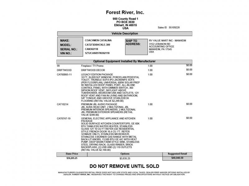 Coachmen Catalina Legacy Edition travel trailer 273DBHCK highlights: