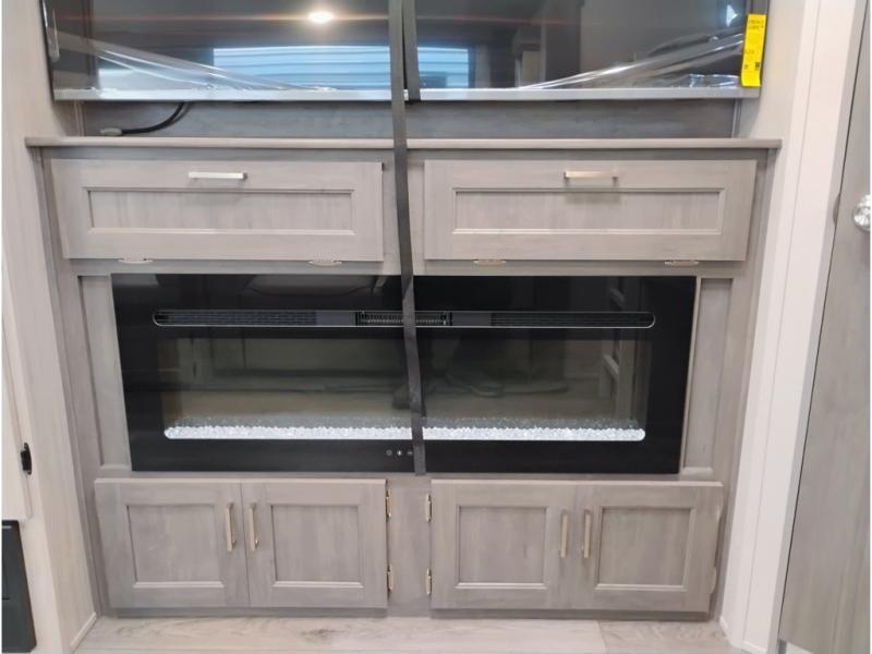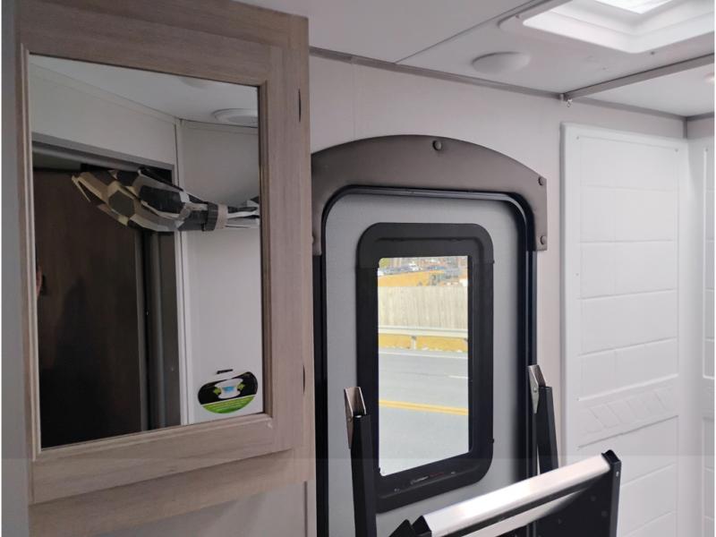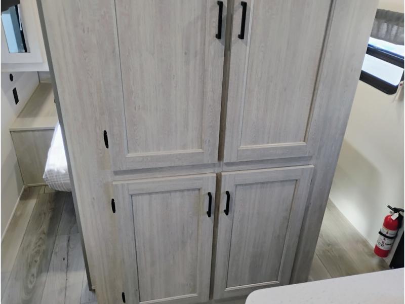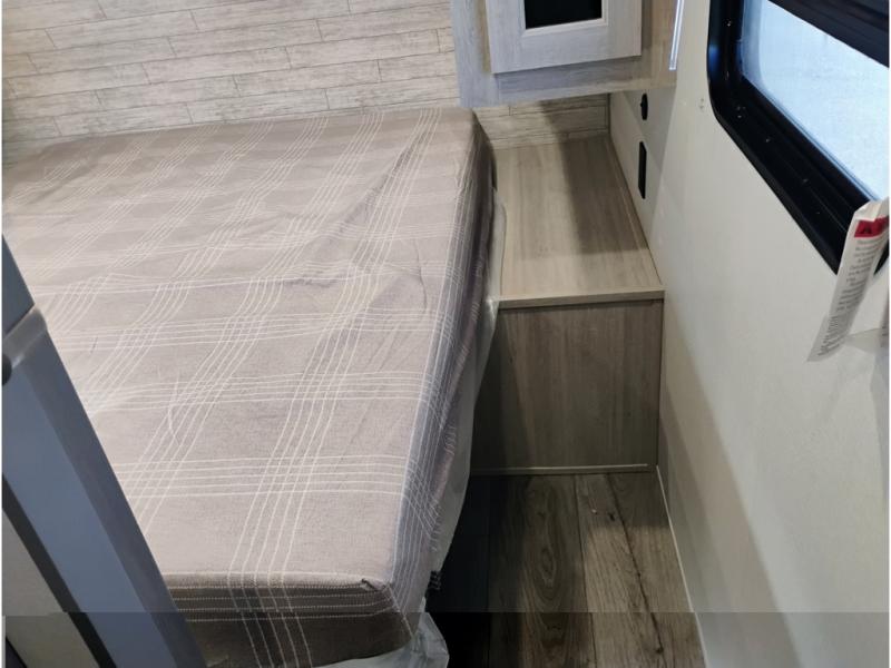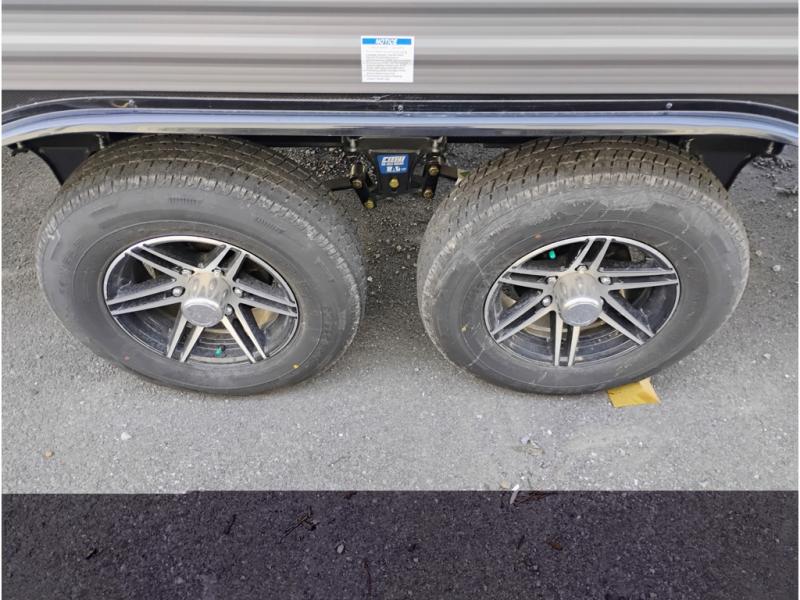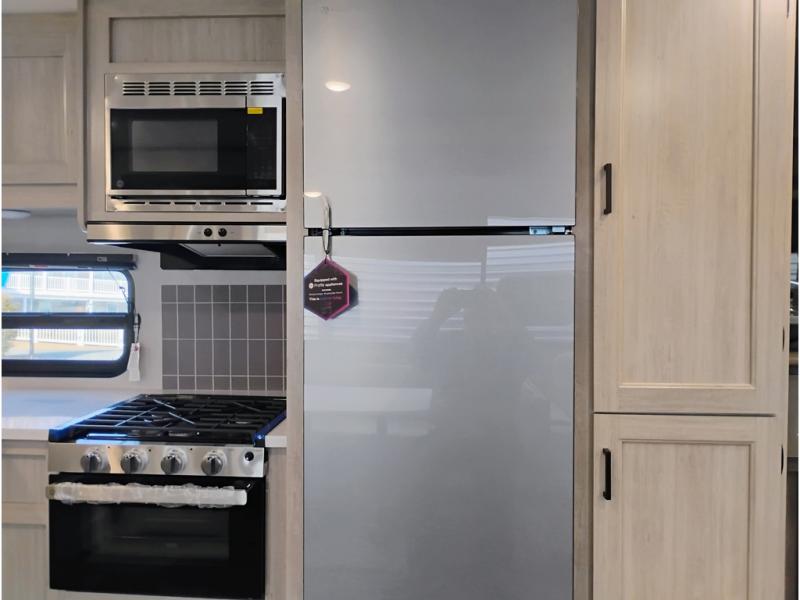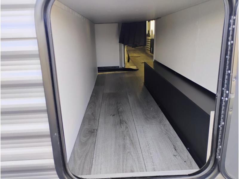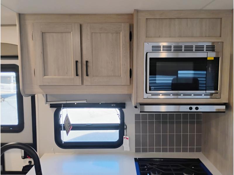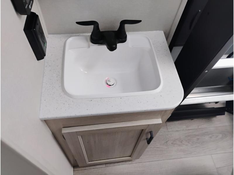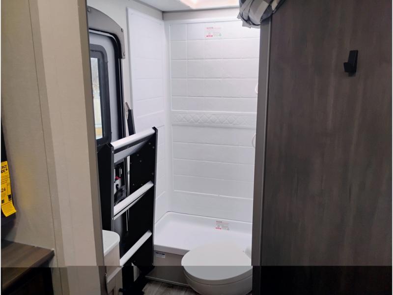 This travel trailer is perfect for your whole crew! Once you arrive at the campground, you can put out the 21' electric awning and start lunch on the exterior camper kitchen with a griddle and mini fridge. There is also a pass-thru storage plus additional exterior storage with a fold-down table and a TV hookup for added convenience. And since there are dual entry doors found on this unit, you can enter in through the full bath in the back, or the main living area towards the front! A large slide provides ample space to move about, and you'll find a trundle sofa and U-shaped dinette here for cozy seating and sleeping space. Speaking of sleeping, there is a front RV queen bed in the bedroom plus double-size bunks in the back for guests!