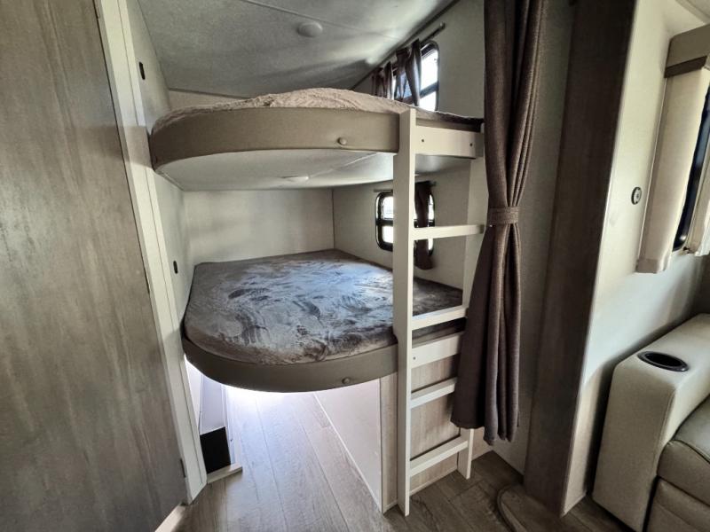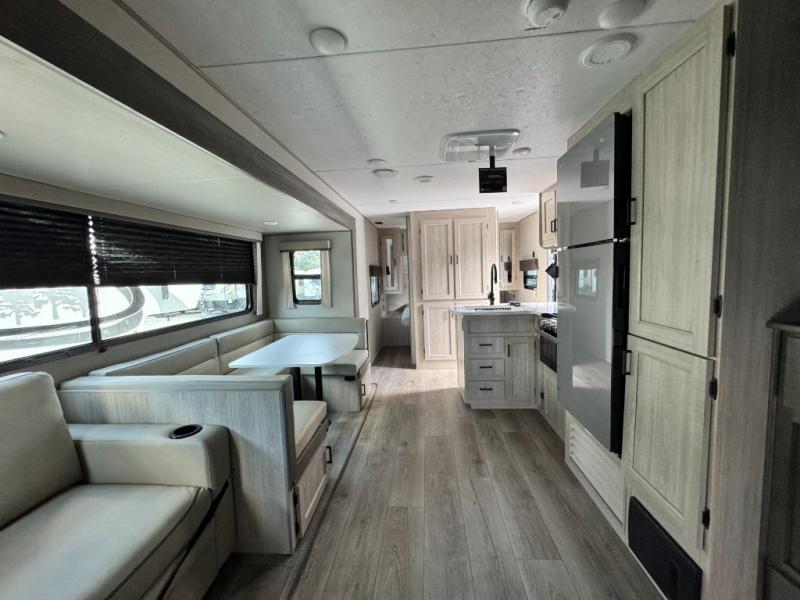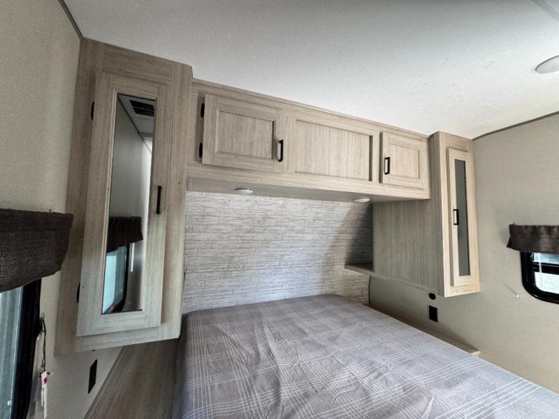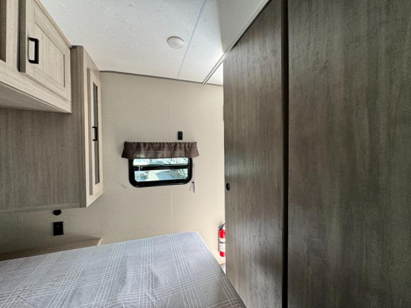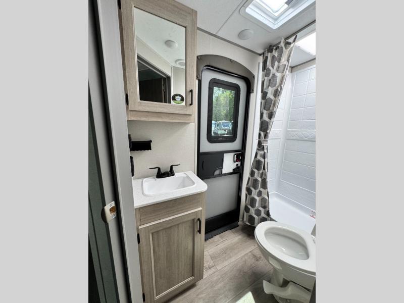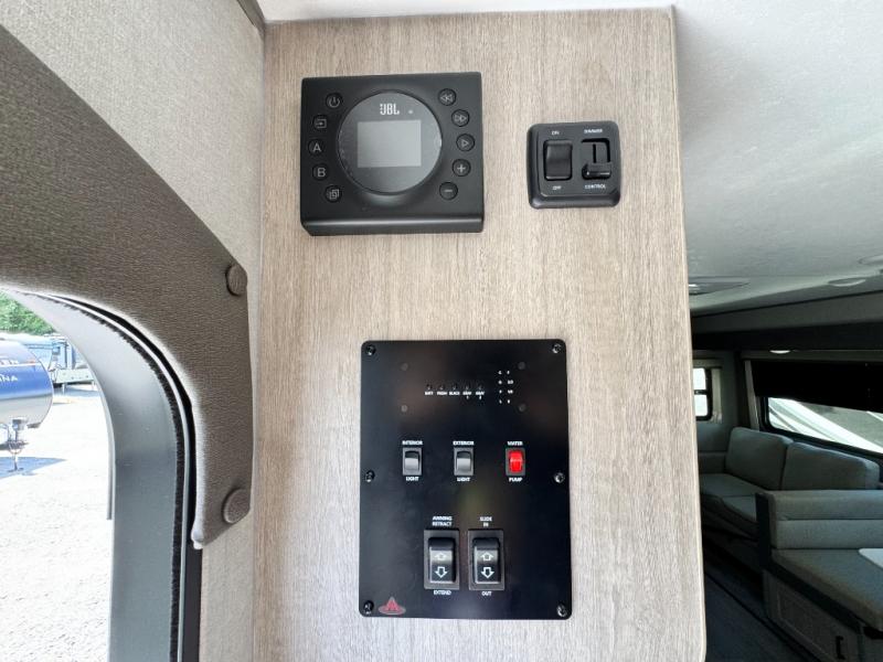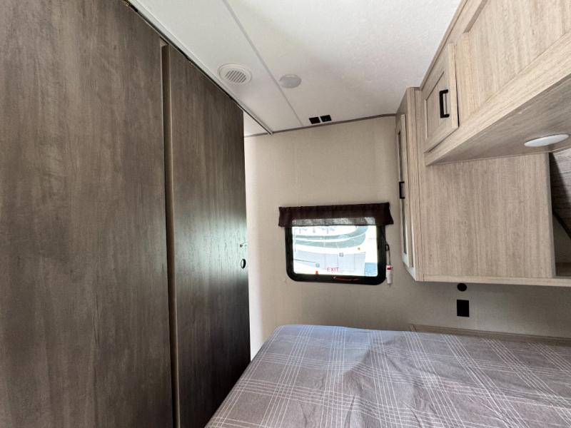 10 FT. SLIDEOUT WINDOW, PORCELAIN PEDESTAL TOILET, TRUNDLE SOFA IPO JACKKNIFE SOFA (PER FLOORPLAN), UNIVERSAL 600W SOLAR PREP W/ INSTALLED ROOF PANEL PORT, ALL-IN-ONE CONTROL PANEL WITH DIMMER SWITCH, 360 SIPHON ROOF VENT, SKYLIGHT ABOVE TUB/SHOWER, BEDROOM USB AND OUTLETS, 12V ROOF VENT AND FAN IN LIVING AND BATHROOM, 5/8" TONGUE AND GROOVE STABLEDECK FLOORING (RETAIL VALUE $2,299.00)