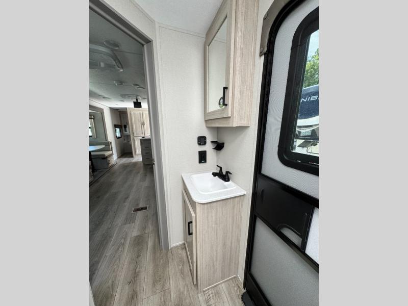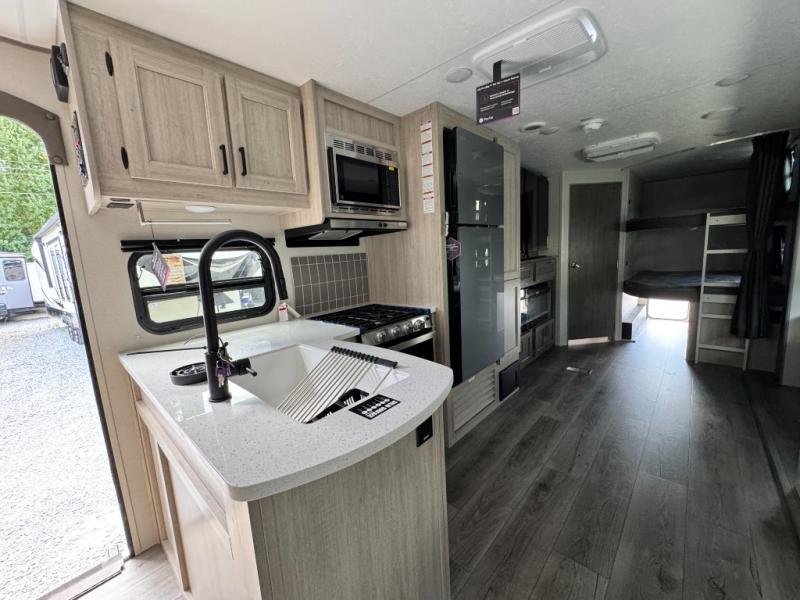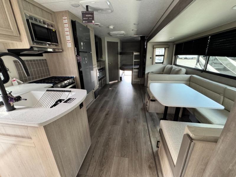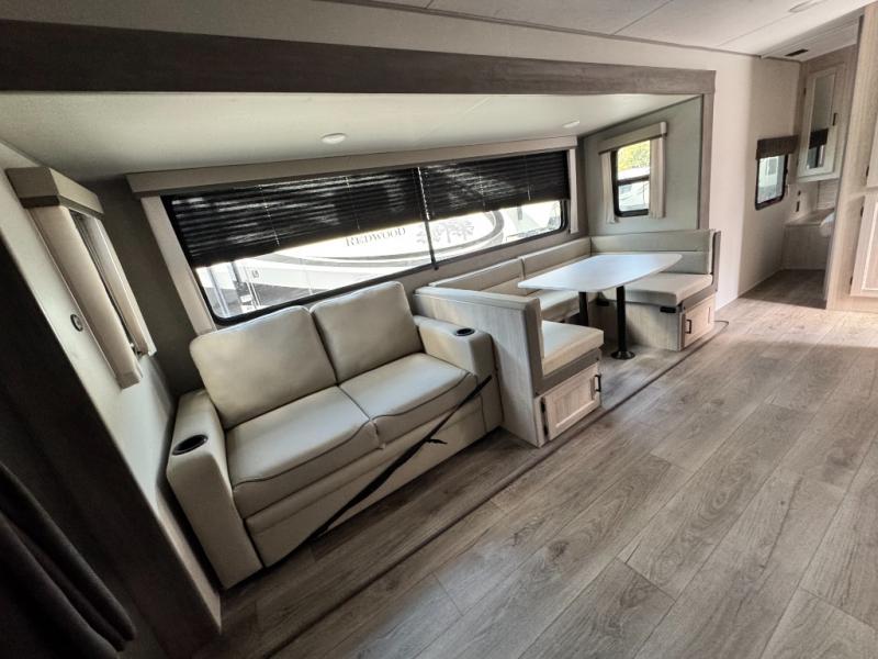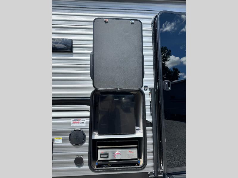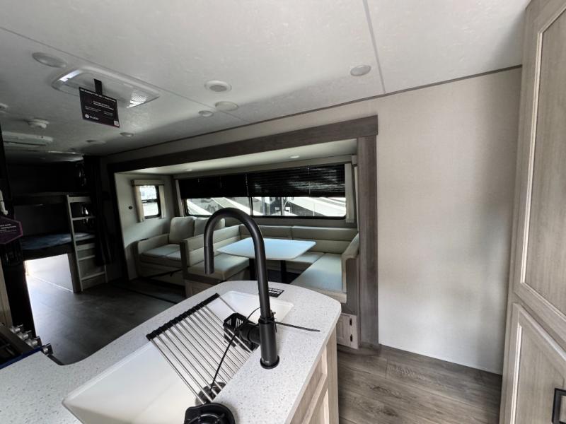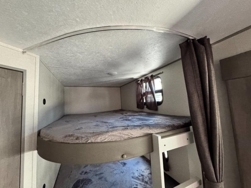 10 FT. SLIDEOUT WINDOW, PORCELAIN PEDESTAL TOILET, TRUNDLE SOFA IPO JACKKNIFE SOFA (PER FLOORPLAN), UNIVERSAL 600W SOLAR PREP W/ INSTALLED ROOF PANEL PORT, ALL-IN-ONE CONTROL PANEL WITH DIMMER SWITCH, 360 SIPHON ROOF VENT, SKYLIGHT ABOVE TUB/SHOWER, BEDROOM USB AND OUTLETS, 12V ROOF VENT AND FAN IN LIVING AND BATHROOM, 5/8" TONGUE AND GROOVE STABLEDECK FLOORING (RETAIL VALUE $2,299.00)