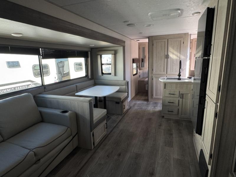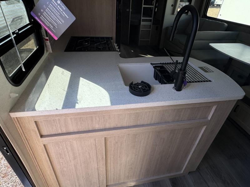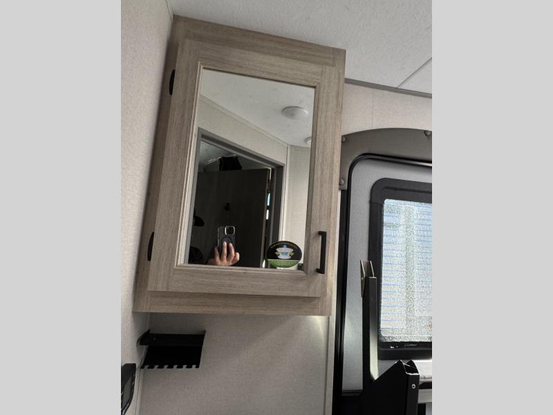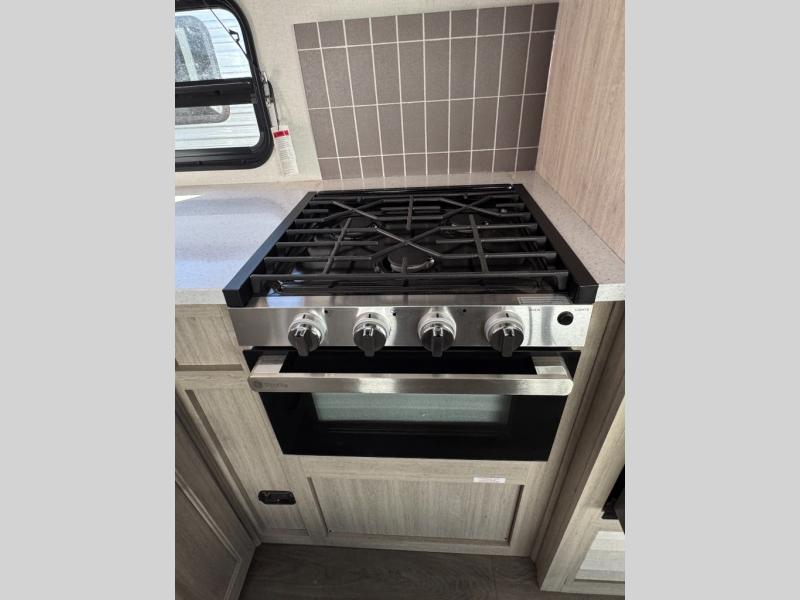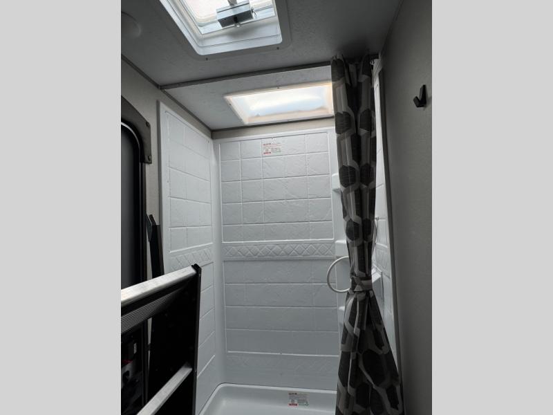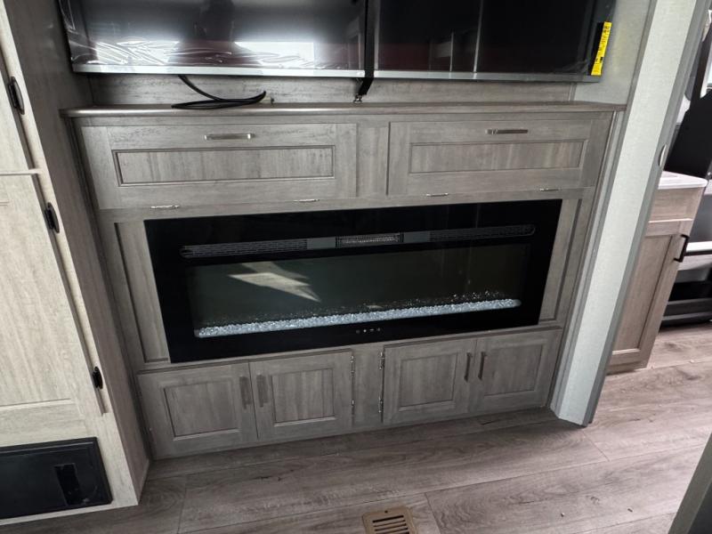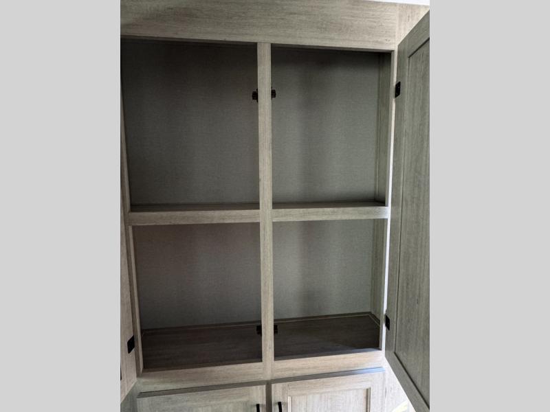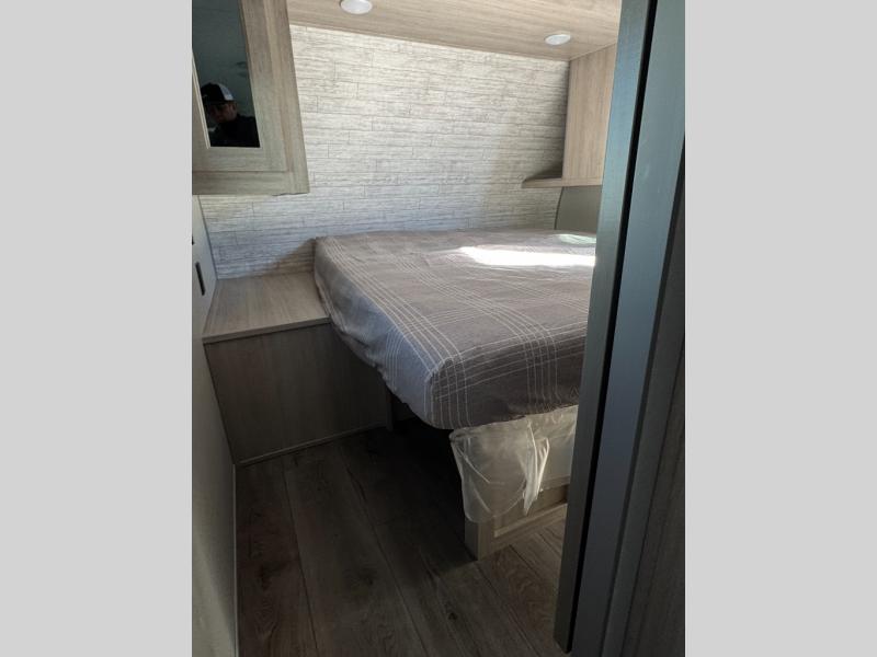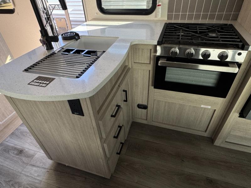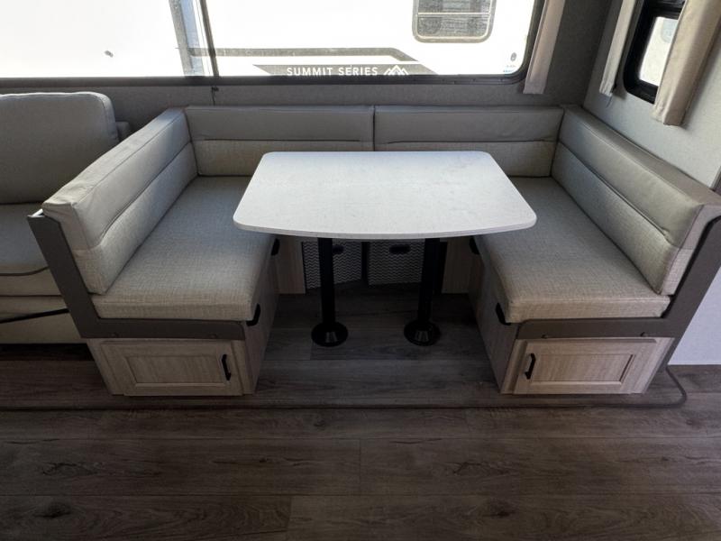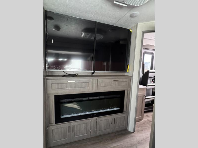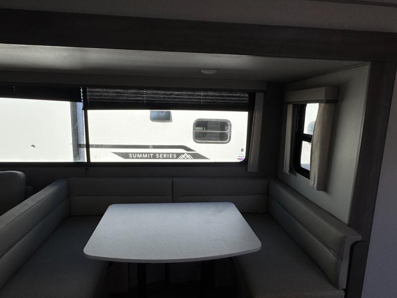 This travel trailer is perfect for your whole crew! Once you arrive at the campground, you can put out the 21' electric awning and start lunch on the exterior camper kitchen with a griddle and mini fridge. There is also a pass-thru storage plus additional exterior storage with a fold-down table and a TV hookup for added convenience. And since there are dual entry doors found on this unit, you can enter in through the full bath in the back, or the main living area towards the front! A large slide provides ample space to move about, and you'll find a trundle sofa and U-shaped dinette here for cozy seating and sleeping space. Speaking of sleeping, there is a front RV queen bed in the bedroom plus double-size bunks in the back for guests!