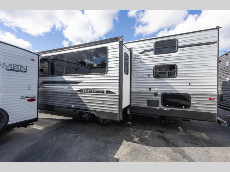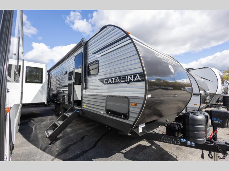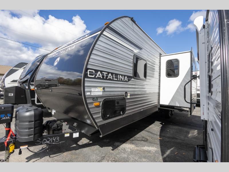 Each Catalina Legacy travel trailer by Coachmen is constructed with a cambered structural steel I-beam frame for added strength and support, plus an enclosed and fully sealed corrugated underbelly to extend your camping season. There is also a seamless Alpha roof membrane, R-7 insulation throughout, full length frame outriggers, plus many more durable construction materials. You will love the 6' 9" interior height, along with Congoleum woodplank linoleum flooring, solid surface kitchen countertops, and hard valance window treatments. Choose a Catalina Legacy today!