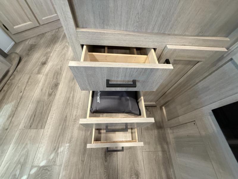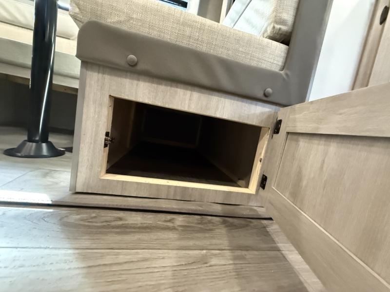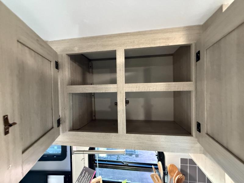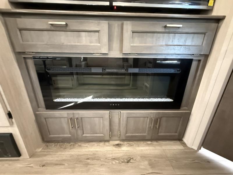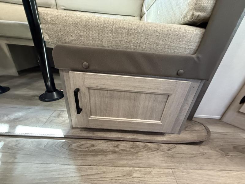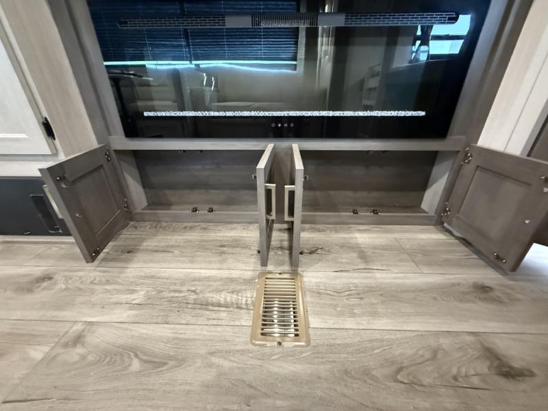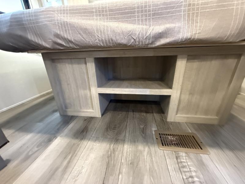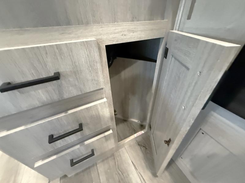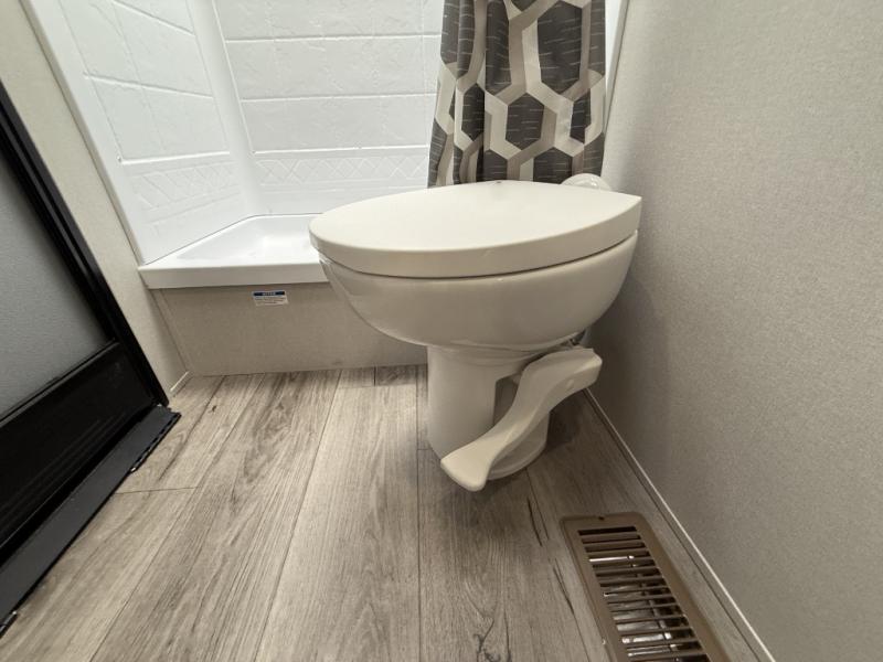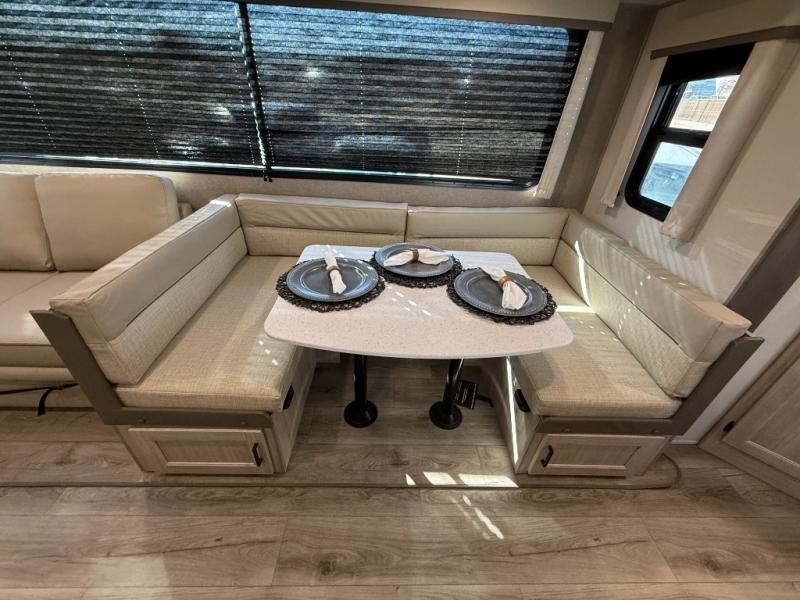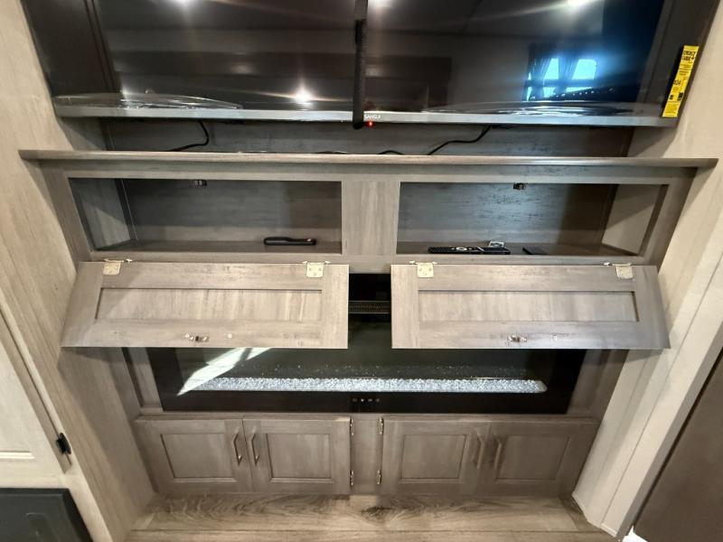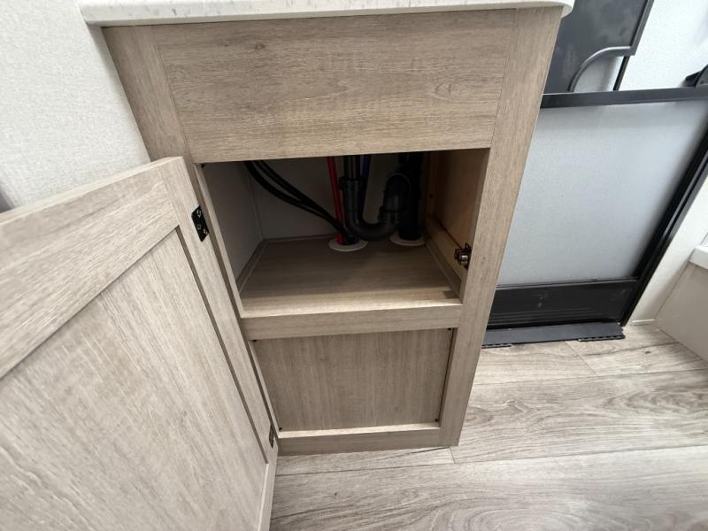 This travel trailer is perfect for your whole crew! Once you arrive at the campground, you can put out the 21' electric awning and start lunch on the exterior camper kitchen with a griddle and mini fridge. There is also a pass-thru storage plus additional exterior storage with a fold-down table and a TV hookup for added convenience. And since there are dual entry doors found on this unit, you can enter in through the full bath in the back, or the main living area towards the front! A large slide provides ample space to move about, and you'll find a trundle sofa and U-shaped dinette here for cozy seating and sleeping space. Speaking of sleeping, there is a front RV queen bed in the bedroom plus double-size bunks in the back for guests!
