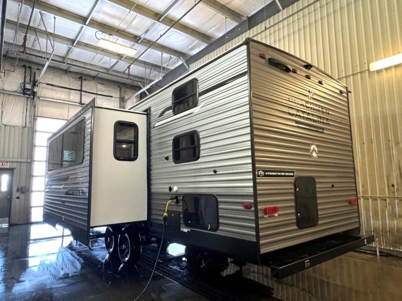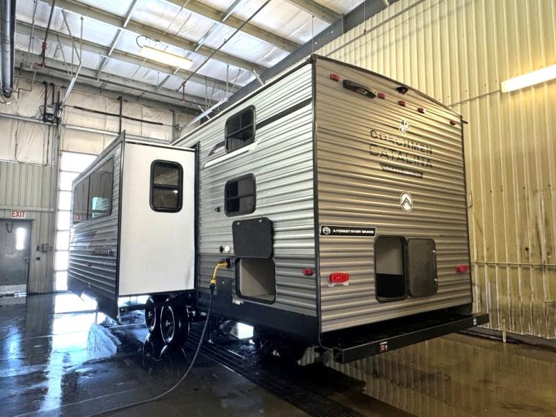 Each Catalina Legacy travel trailer by Coachmen is constructed with a cambered structural steel I-beam frame for added strength and support, plus an enclosed and fully sealed corrugated underbelly to extend your camping season. There is also a seamless Alpha roof membrane, R-7 insulation throughout, full length frame outriggers, plus many more durable construction materials. You will love the 6' 9" interior height, along with Congoleum woodplank linoleum flooring, solid surface kitchen countertops, and hard valance window treatments. Choose a Catalina Legacy today!