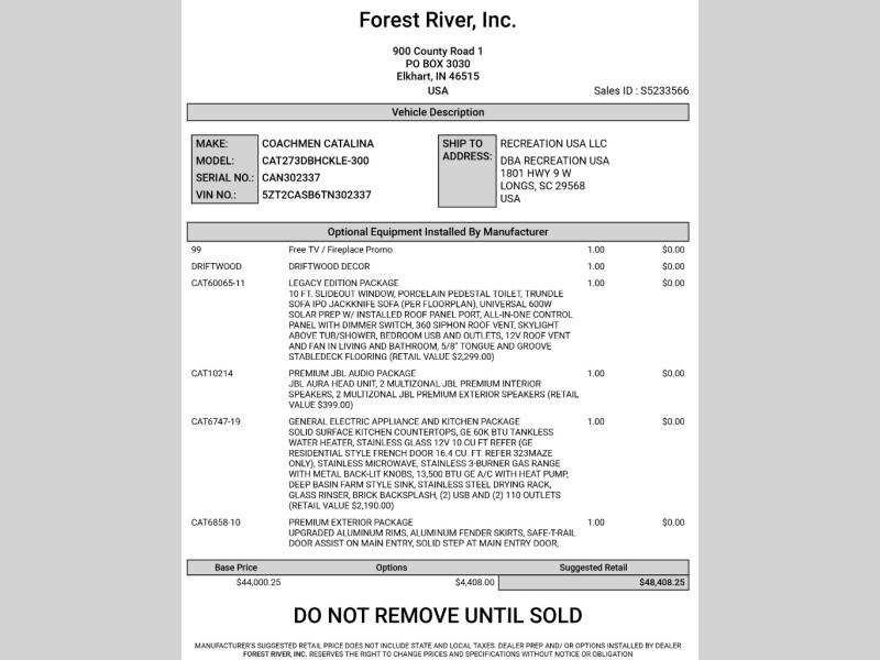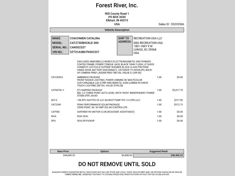 This brand new 2026 Coachmen Catalina 273DBHCKLE is for sale at Recreation USA in Myrtle Beach, SC. We proudly serve RV buyers throughout South Carolina, North Carolina, and Georgia, and we can assist with delivery beyond the Carolinas.