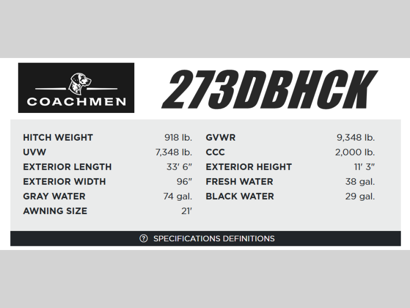Coachmen Catalina Legacy Edition travel trailer 273DBHCK highlights: