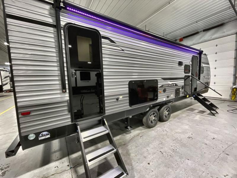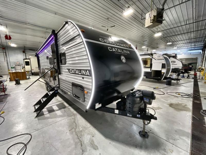 Each Catalina Legacy travel trailer by Coachmen is constructed with a cambered structural steel I-beam frame for added strength and support, plus an enclosed and fully sealed corrugated underbelly to extend your camping season. There is also a seamless Alpha roof membrane, R-7 insulation throughout, full length frame outriggers, plus many more durable construction materials. You will love the 6' 9" interior height, along with Congoleum woodplank linoleum flooring, solid surface kitchen countertops, and hard valance window treatments. Choose a Catalina Legacy today!