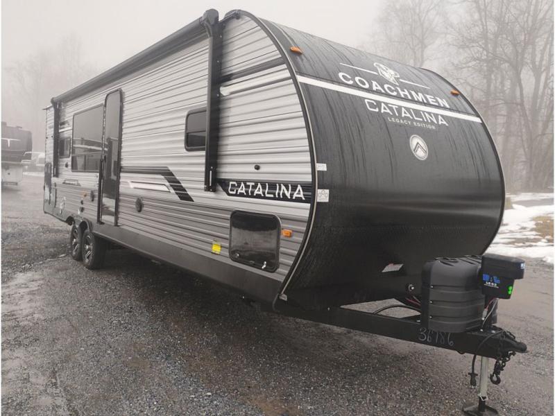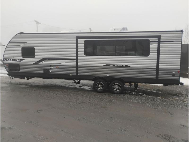 Each Catalina Legacy travel trailer by Coachmen is constructed with a cambered structural steel I-beam frame for added strength and support, plus an enclosed and fully sealed corrugated underbelly to extend your camping season. There is also a seamless Alpha roof membrane, R-7 insulation throughout, full length frame outriggers, plus many more durable construction materials. You will love the 6' 9" interior height, along with Congoleum woodplank linoleum flooring, solid surface kitchen countertops, and hard valance window treatments. Choose a Catalina Legacy today!