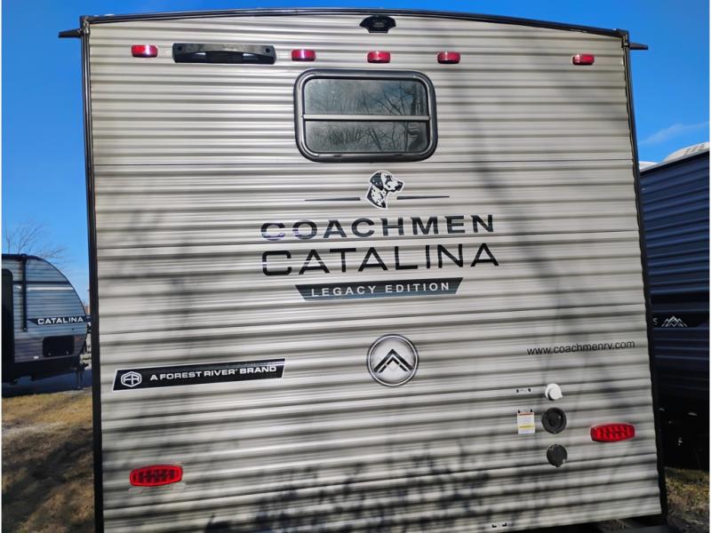 Each Catalina Legacy travel trailer by Coachmen is constructed with a cambered structural steel I-beam frame for added strength and support, plus an enclosed and fully sealed corrugated underbelly to extend your camping season. There is also a seamless Alpha roof membrane, R-7 insulation throughout, full length frame outriggers, plus many more durable construction materials. You will love the 6' 9" interior height, along with Congoleum woodplank linoleum flooring, solid surface kitchen countertops, and hard valance window treatments. Choose a Catalina Legacy today!