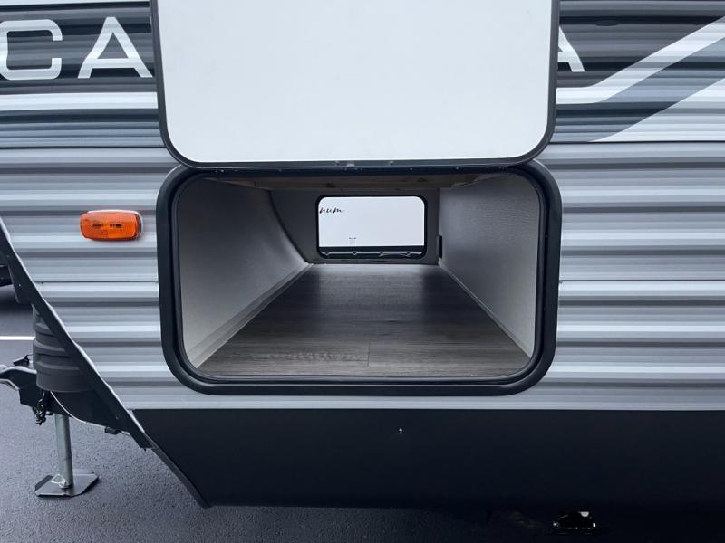 Each Catalina Legacy travel trailer by Coachmen is constructed with a cambered structural steel I-beam frame for added strength and support, plus an enclosed and fully sealed corrugated underbelly to extend your camping season. There is also a seamless Alpha roof membrane, R-7 insulation throughout, full length frame outriggers, plus many more durable construction materials. You will love the 6' 9" interior height, along with Congoleum woodplank linoleum flooring, solid surface kitchen countertops, and hard valance window treatments. Choose a Catalina Legacy today!