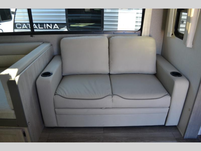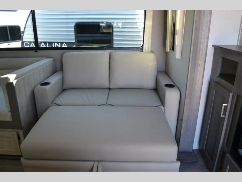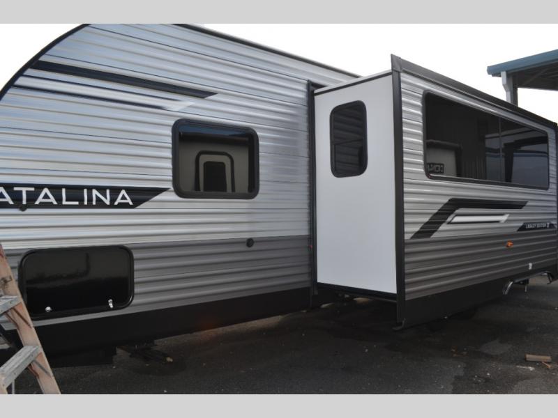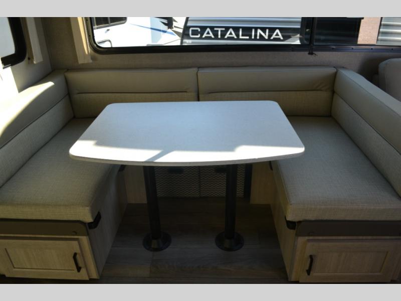 Each Catalina Legacy travel trailer by Coachmen is constructed with a cambered structural steel I-beam frame for added strength and support, plus an enclosed and fully sealed corrugated underbelly to extend your camping season. There is also a seamless Alpha roof membrane, R-7 insulation throughout, full length frame outriggers, plus many more durable construction materials. You will love the 6' 9" interior height, along with Congoleum woodplank linoleum flooring, seamless Thermofoil countertops, and hard valance window treatments. Choose a Catalina Legacy today!
