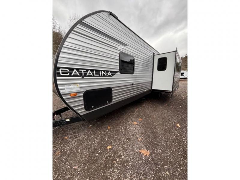 Each Catalina Legacy travel trailer by Coachmen is constructed with a cambered structural steel I-beam frame for added strength and support, plus an enclosed and fully sealed corrugated underbelly to extend your camping season. There is also a seamless Alpha roof membrane, R-7 insulation throughout, full length frame outriggers, plus many more durable construction materials. You will love the 6' 9" interior height, along with Congoleum woodplank linoleum flooring, solid surface kitchen countertops, and hard valance window treatments. Choose a Catalina Legacy today!