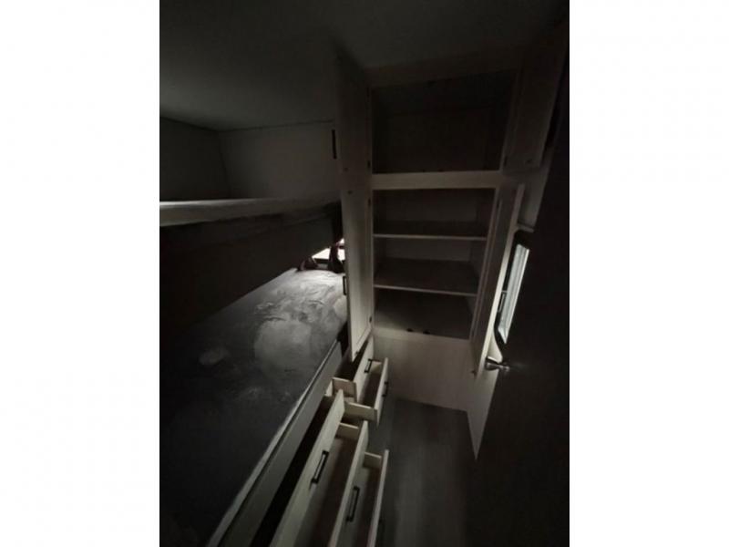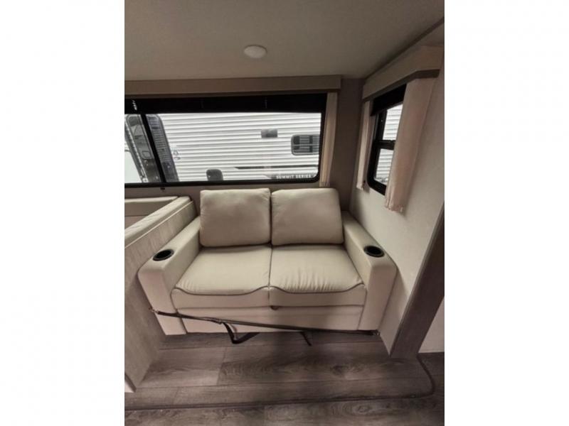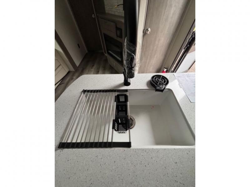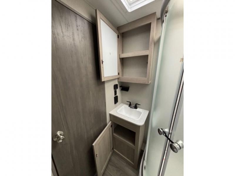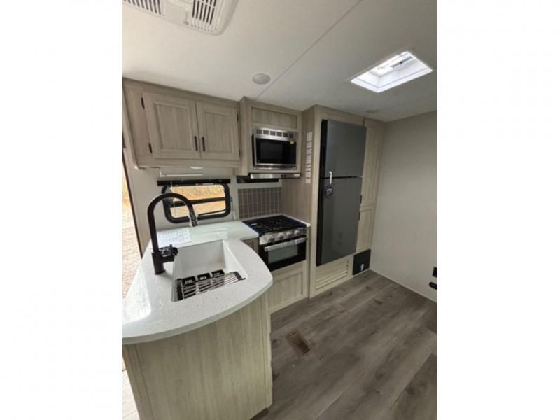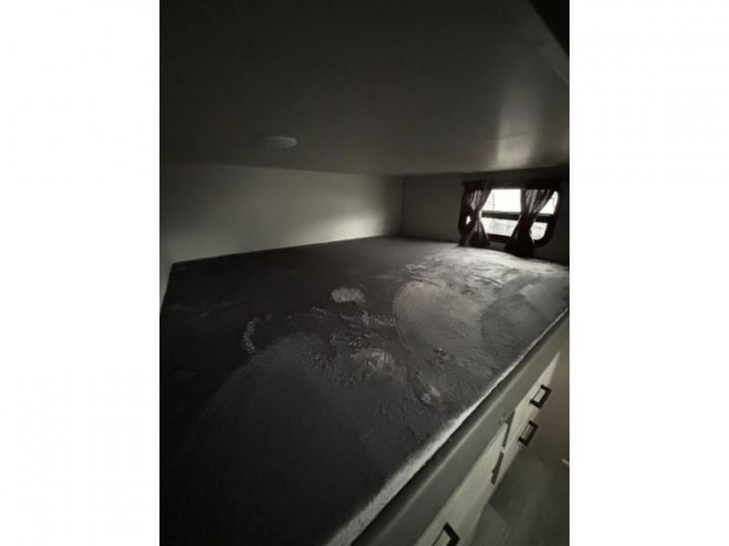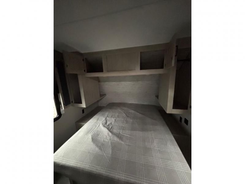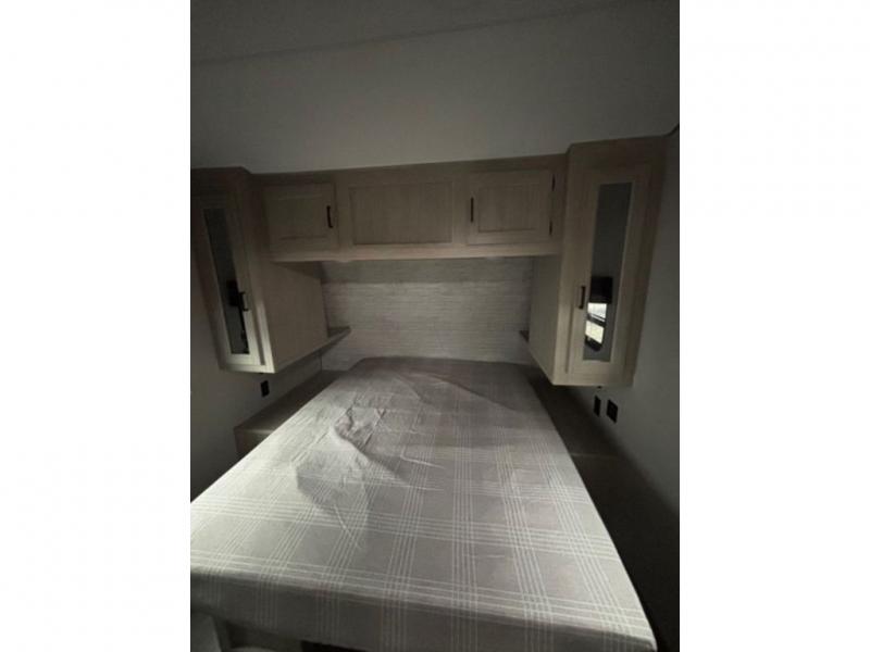Not only will you be comfortable in this trailer, your friends will have comfort and privacy thanks to having their own bunkhouse with queen-size bunk beds, underbed storage, and a linen closet for clean clothes! The front master bedroom includes a walk-around queen bed, dual wardrobes, plus quick access to the dual entry bath! The combined living and kitchen is spacious thanks to the slide out U-shaped dinette and sofa with drink holders. You can even add the fireplace option if you want that feature. The cook will have full amenities to whip up meals including overhead cabinets for dishes and snacks, plus an outdoor camper kitchen with a pull-out griddle, a cabinet, and a refrigerator!