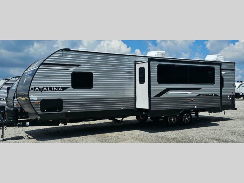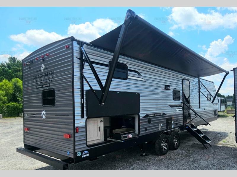 Each Catalina Legacy travel trailer by Coachmen is constructed with a cambered structural steel I-beam frame for added strength and support, plus an enclosed and fully sealed corrugated underbelly to extend your camping season. There is also a seamless Alpha roof membrane, R-7 insulation throughout, full length frame outriggers, plus many more durable construction materials. You will love the 6' 9" interior height, along with Congoleum woodplank linoleum flooring, solid surface kitchen countertops, and hard valance window treatments. Choose a Catalina Legacy today!
