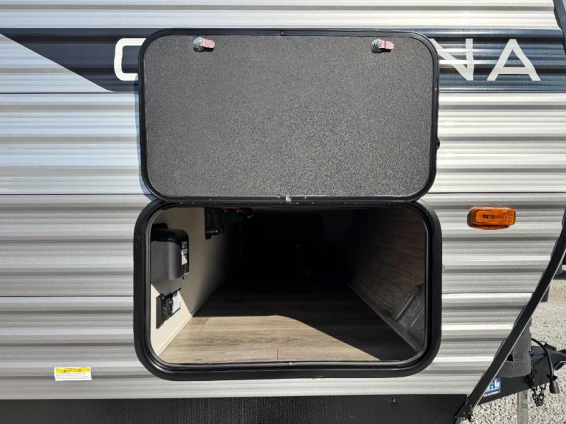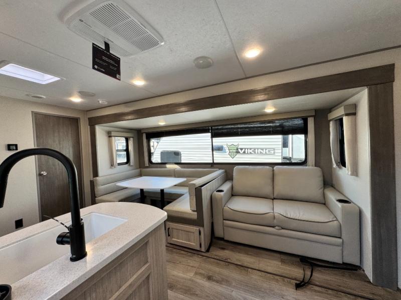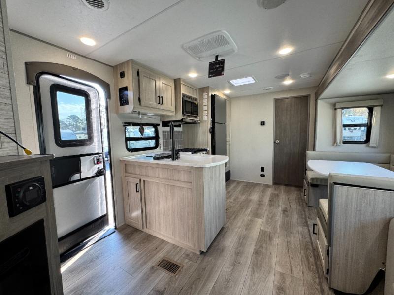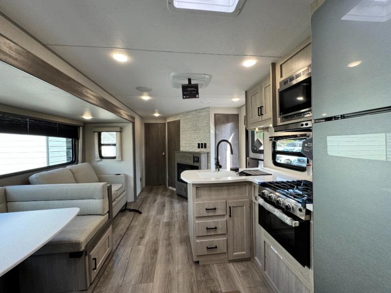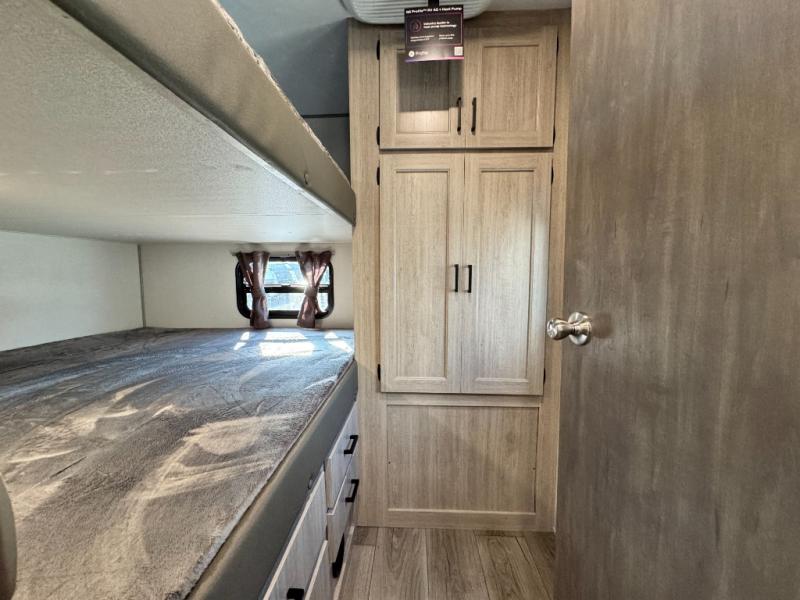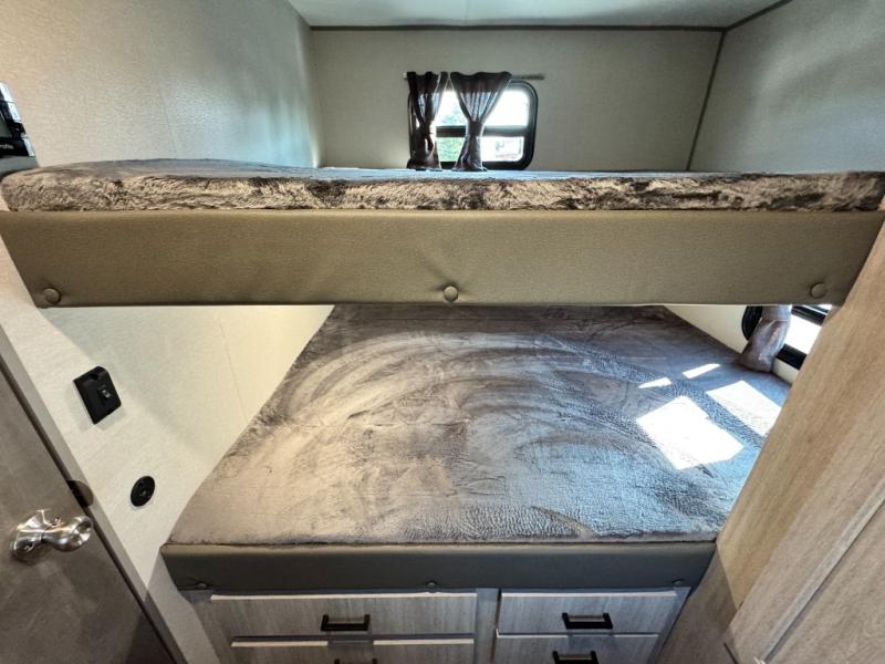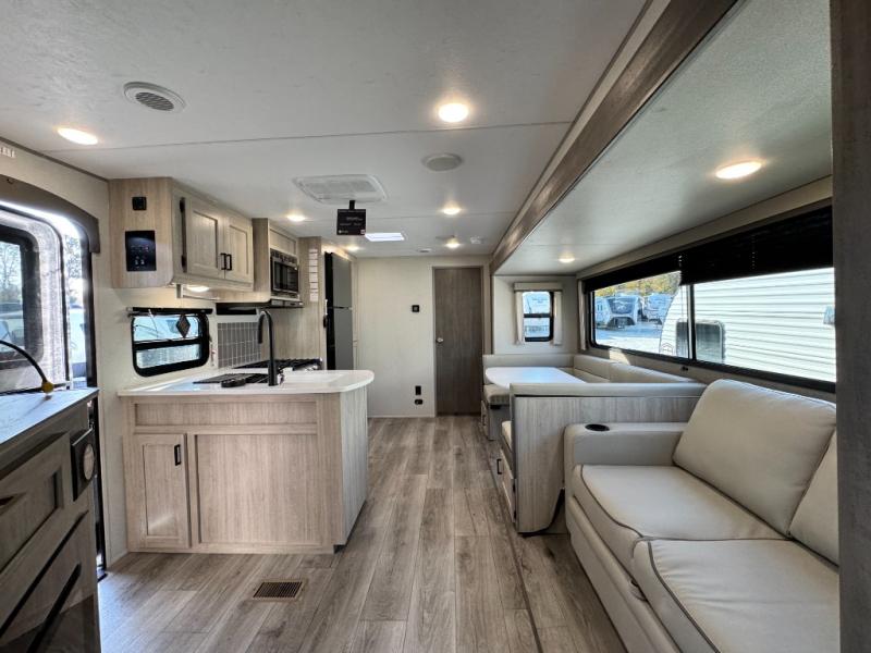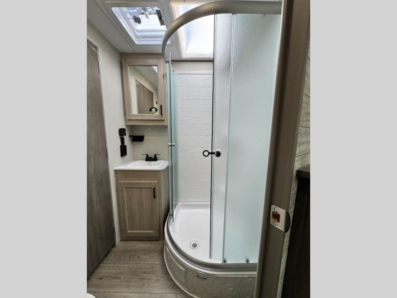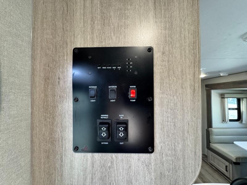 10 FT. SLIDEOUT WINDOW, PORCELAIN PEDESTAL TOILET, TRUNDLE SOFA IPO JACKKNIFE SOFA (PER FLOORPLAN), UNIVERSAL 600W SOLAR PREP W/ INSTALLED ROOF PANEL PORT, ALL-IN-ONE CONTROL PANEL WITH DIMMER SWITCH. 360 SIPHON ROOF VENT, SKYLIGHT ABOVE TUB/SHOWER, BEDROOM USB AND OUTLETS, 12V ROOF VENT AND FAN IN LIVING AND BATHROOM, 5/8" TONGUE AND GROOVE STABLEDECK FLOORING (RETAIL VALUE $2,299.00)