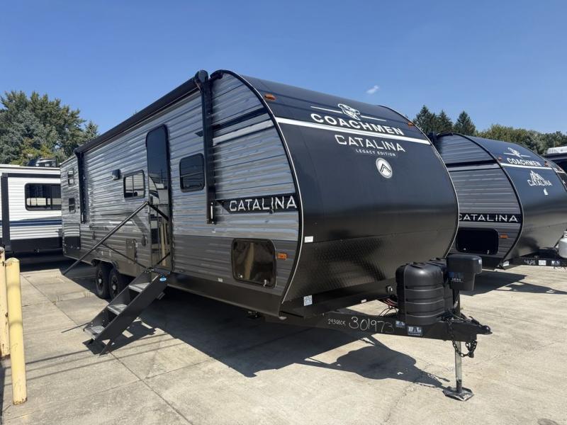 Each Catalina Legacy travel trailer by Coachmen is constructed with a cambered structural steel I-beam frame for added strength and support, plus an enclosed and fully sealed corrugated underbelly to extend your camping season. There is also a seamless Alpha roof membrane, R-7 insulation throughout, full length frame outriggers, plus many more durable construction materials. You will love the 6' 9" interior height, along with Congoleum woodplank linoleum flooring, solid surface kitchen countertops, and hard valance window treatments. Choose a Catalina Legacy today!