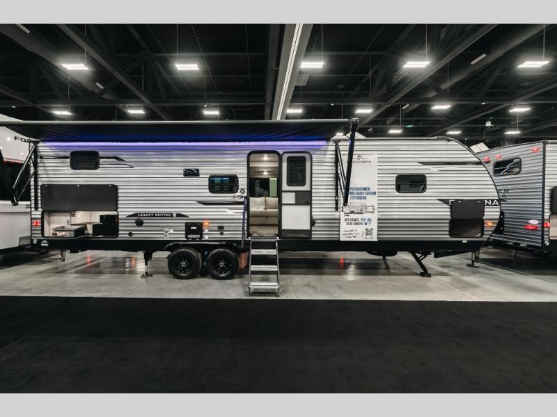Each Catalina Legacy travel trailer by Coachmen is constructed with a cambered structural steel I-beam frame for added strength and support, plus an enclosed and fully sealed corrugated underbelly to extend your camping season. There is also a seamless Alpha roof membrane, R-7 insulation throughout, full length frame outriggers, plus many more durable construction materials. You will love the 6' 9" interior height, along with Congoleum woodplank linoleum flooring, solid surface kitchen countertops, and hard valance window treatments. Choose a Catalina Legacy today!