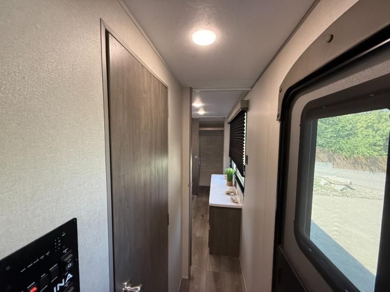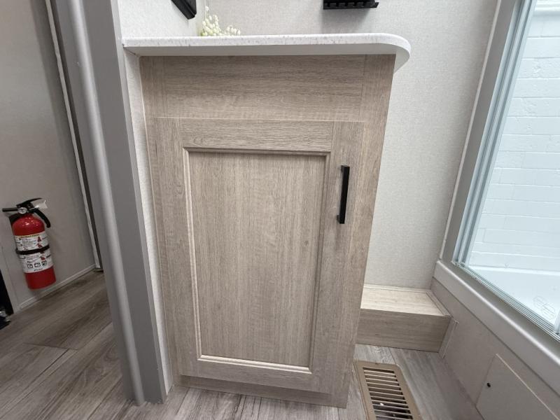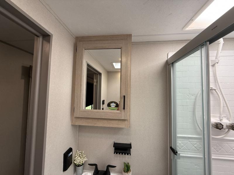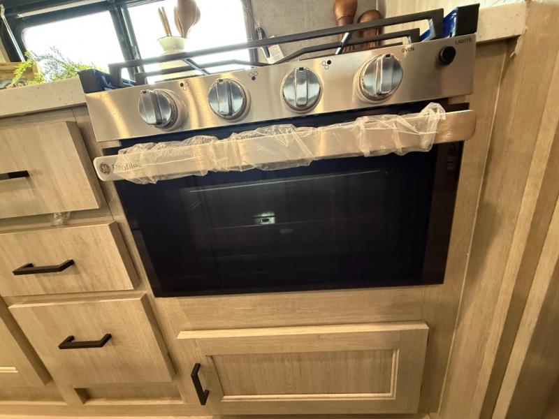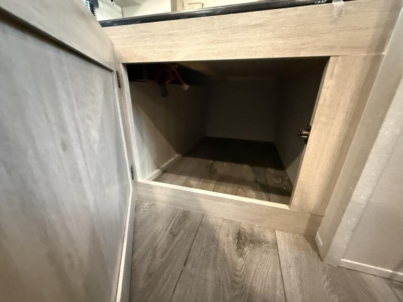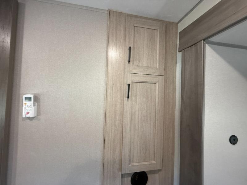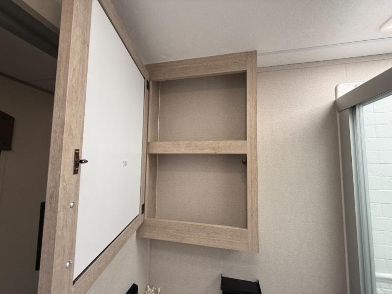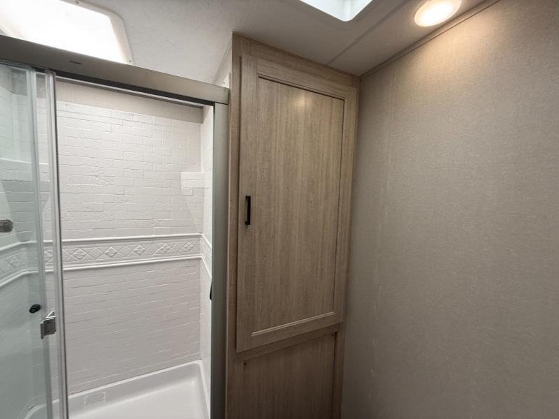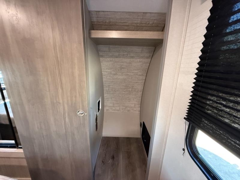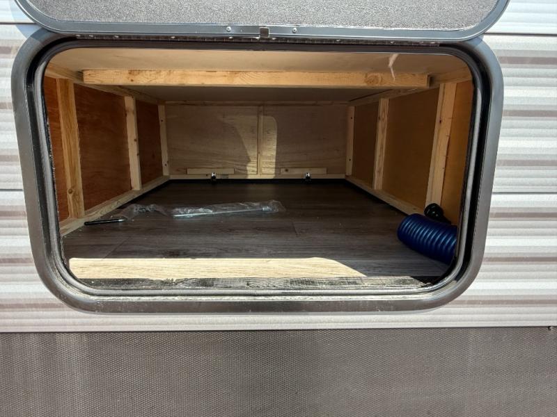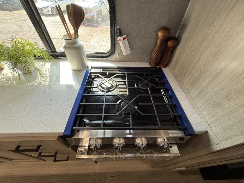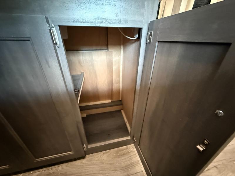 It's not hard to find comfort in this travel trailer with its triple slides, theater seating, and spacious full bath. Once your crew is settled and unpacked, head outdoors to relax under the two power awnings with multicolored LED lights, or grab the fishing poles from the exterior storage and head to the water. If you'd rather spend your day inside you'll find all the comforts of home; theater seating, a sofa and booth dinette, plus a fully equipped kitchen, complete with a kitchen island! You will love having your own space in the front bedroom that includes a queen bed slide out, a dresser, plus two closets. There is even washer and dryer prep if you plan to go full-time!