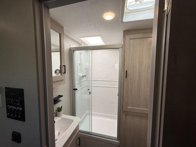 Each Catalina Legacy travel trailer by Coachmen is constructed with a cambered structural steel I-beam frame for added strength and support, plus an enclosed and fully sealed corrugated underbelly to extend your camping season. There is also a seamless Alpha roof membrane, R-7 insulation throughout, full length frame outriggers, plus many more durable construction materials. You will love the 6' 9" interior height, along with Congoleum woodplank linoleum flooring, seamless Thermofoil countertops, and hard valance window treatments. Choose a Catalina Legacy today!
