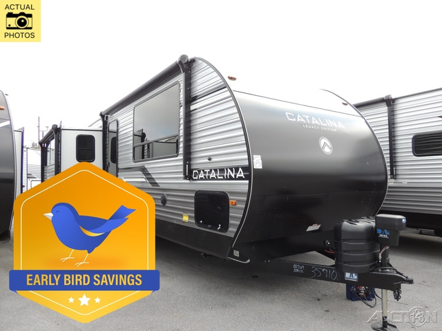 Each Catalina Legacy travel trailer by Coachmen is constructed with a cambered structural steel I-beam frame for added strength and support, plus an enclosed and fully sealed corrugated underbelly to extend your camping season. There is also a seamless Alpha roof membrane, R-7 insulation throughout, full length frame outriggers, plus many more durable construction materials. You will love the 6' 9" interior height, along with Congoleum woodplank linoleum flooring, seamless Thermofoil countertops, and hard valance window treatments. Choose a Catalina Legacy today!